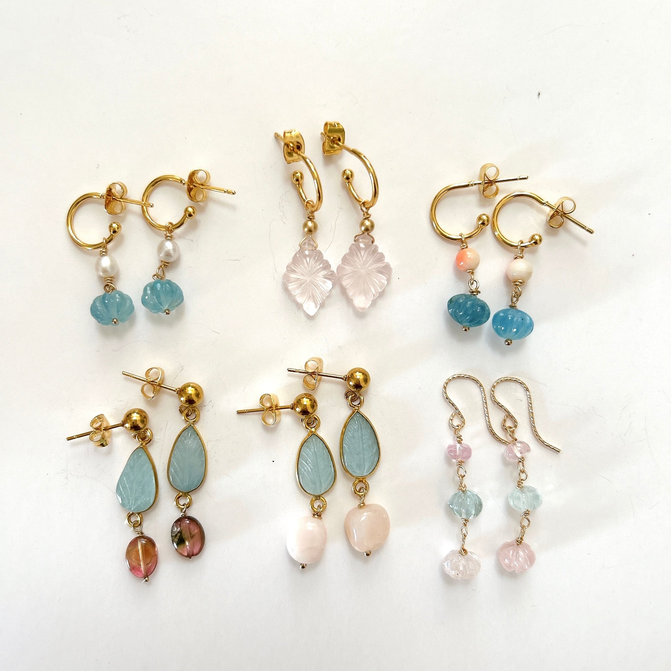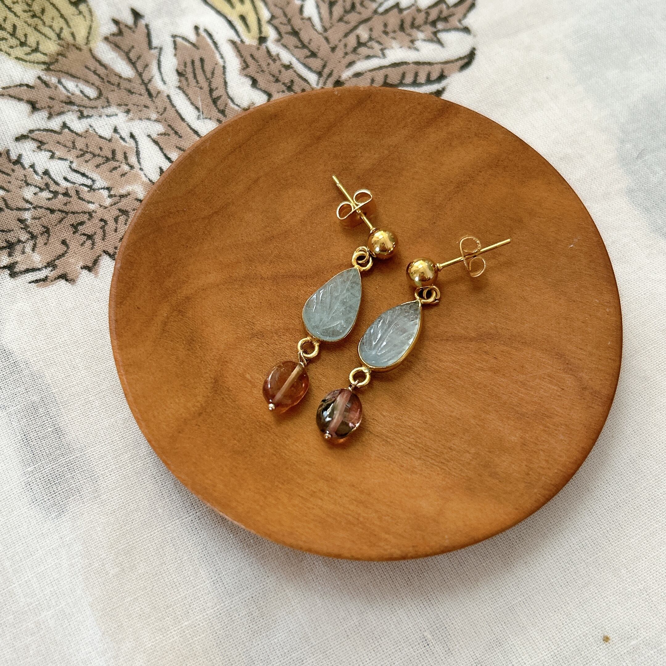 リーフカービングアクアマリンとトルマリンのピアス<イヤリング変更可> P-106