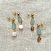 <素材>アクアマリン、ピンクオパール、シルバ−925にK18コーティング(アクアマリン枠)、サージカルステンレス(ピアス金具)、K14GF(ピン)