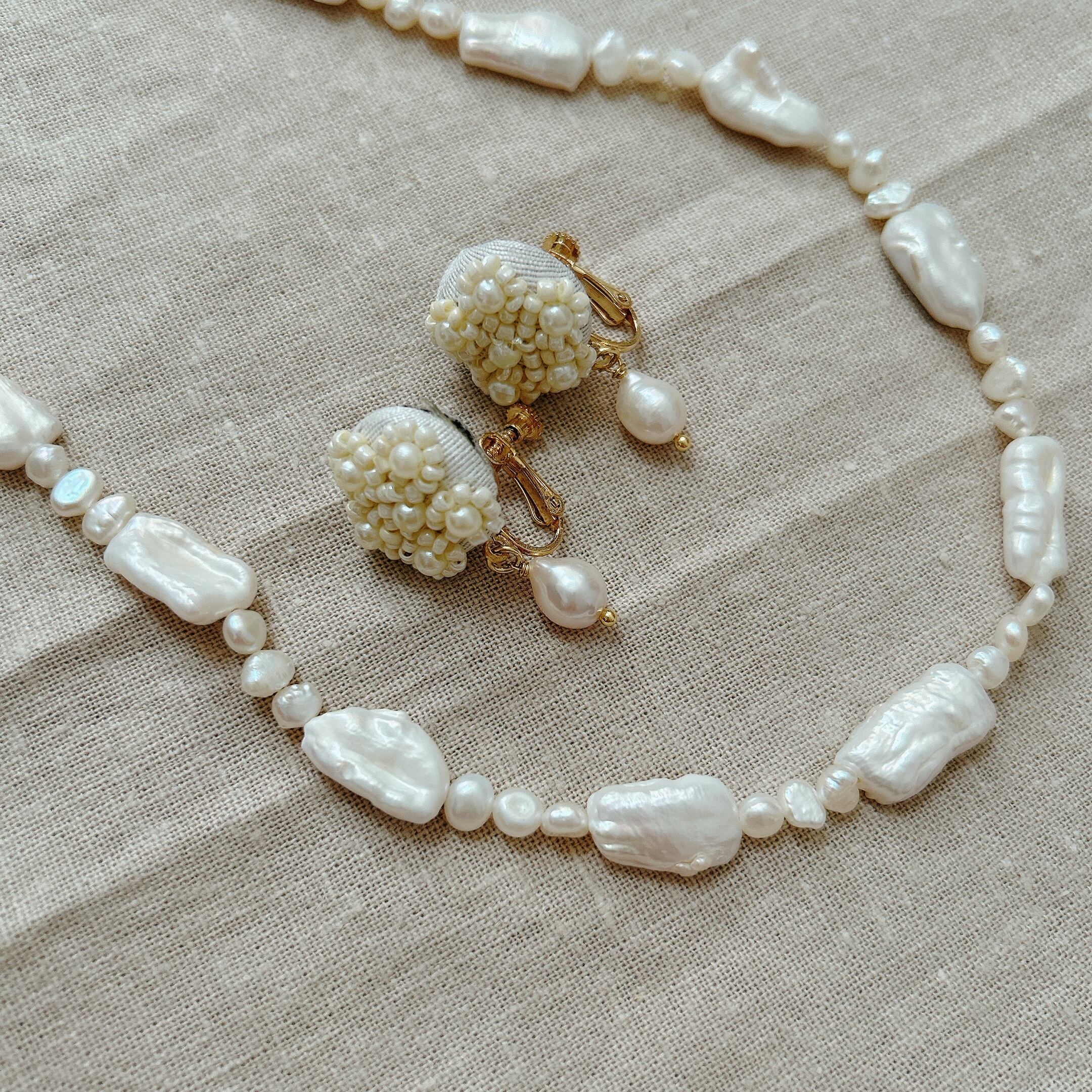 イベントが3月だったこともあり、卒入園(学)にも使っていだだけるよう、あえて色味を足さず、シンプルに淡水パールだけや同系色でまとめてお仕立てしました。