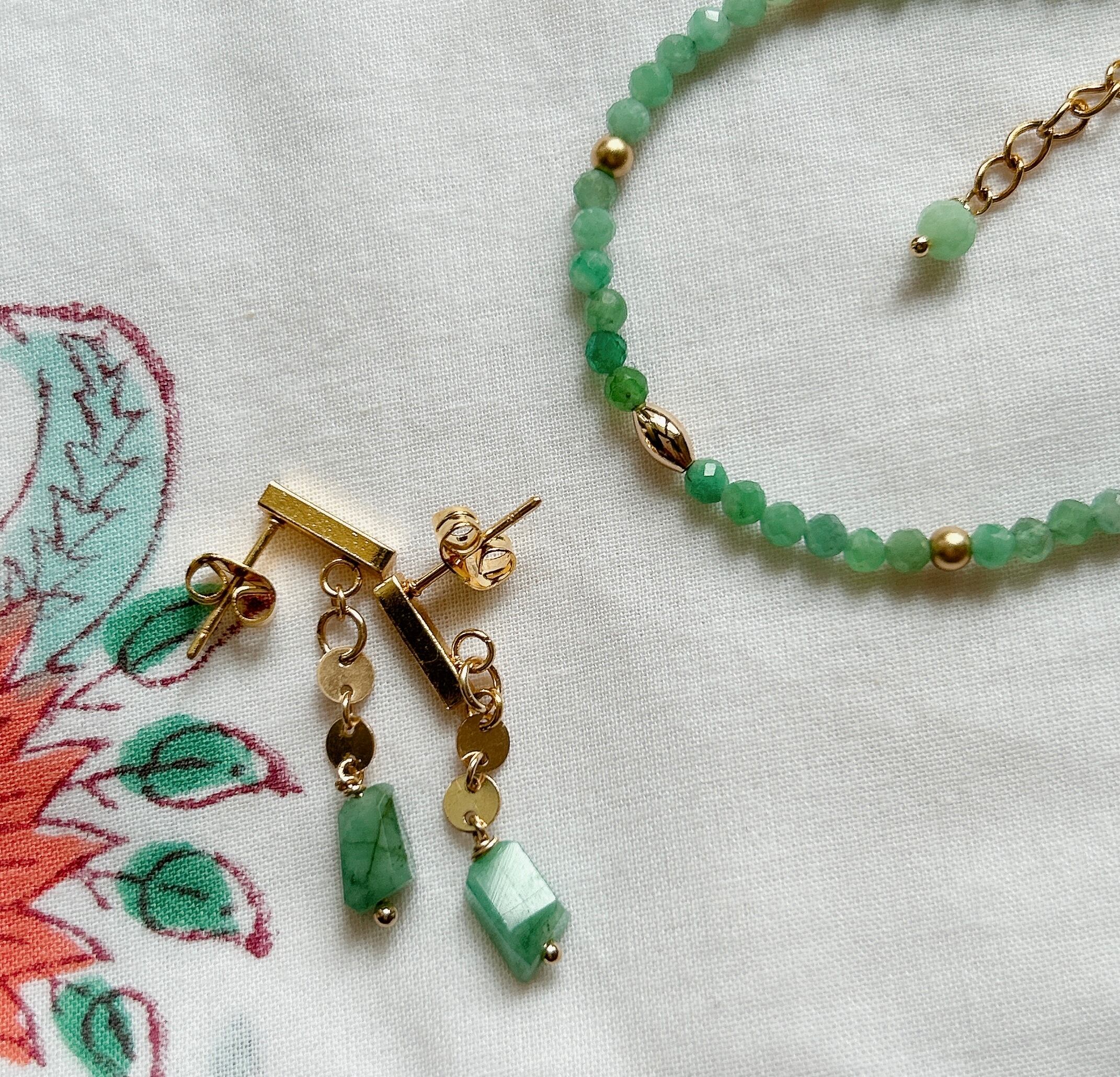 5月の誕生石、エメラルドの小粒ブレスレット。