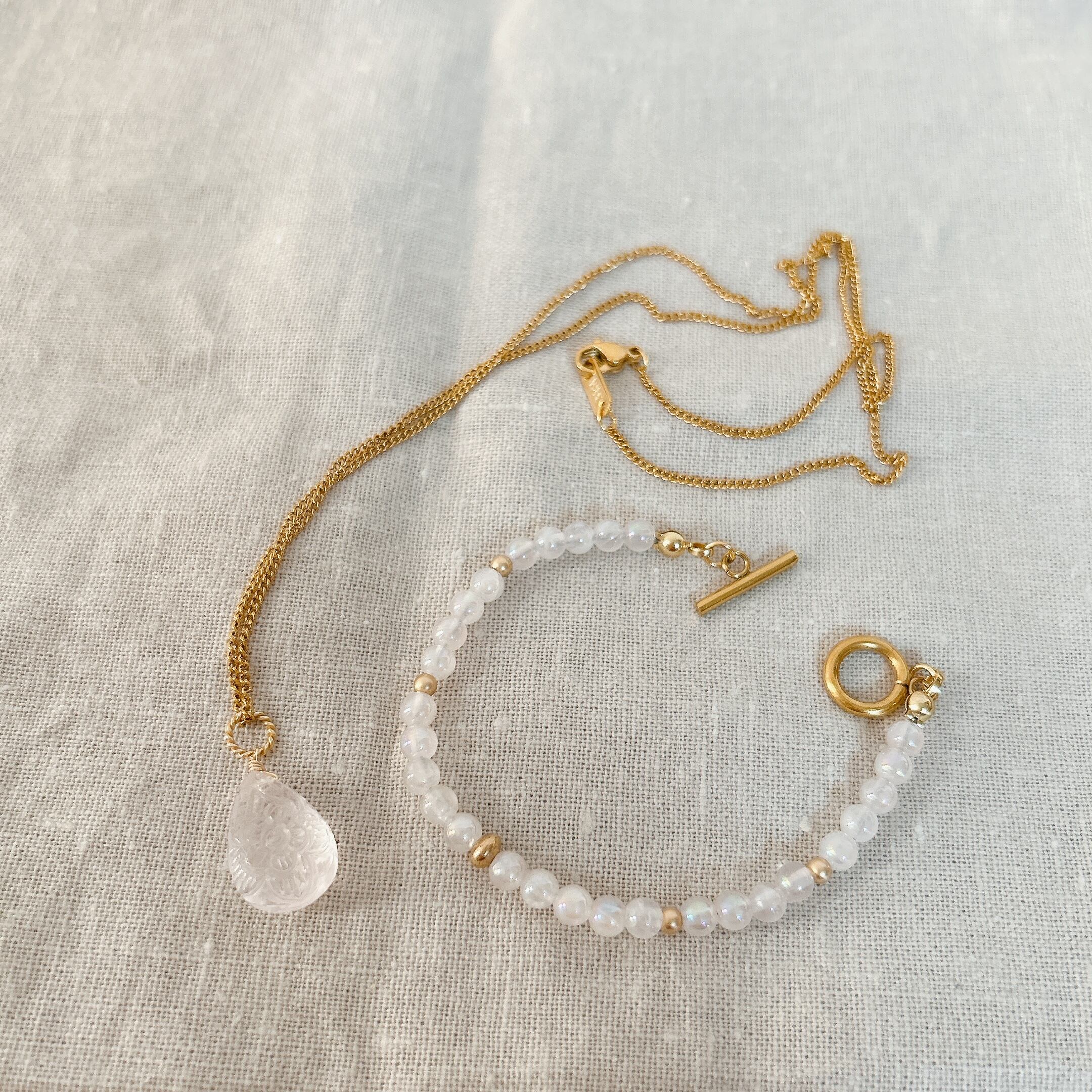 ローズクォーツのブレスレットやピアスとぜひ合わせてお楽しみくださいね。