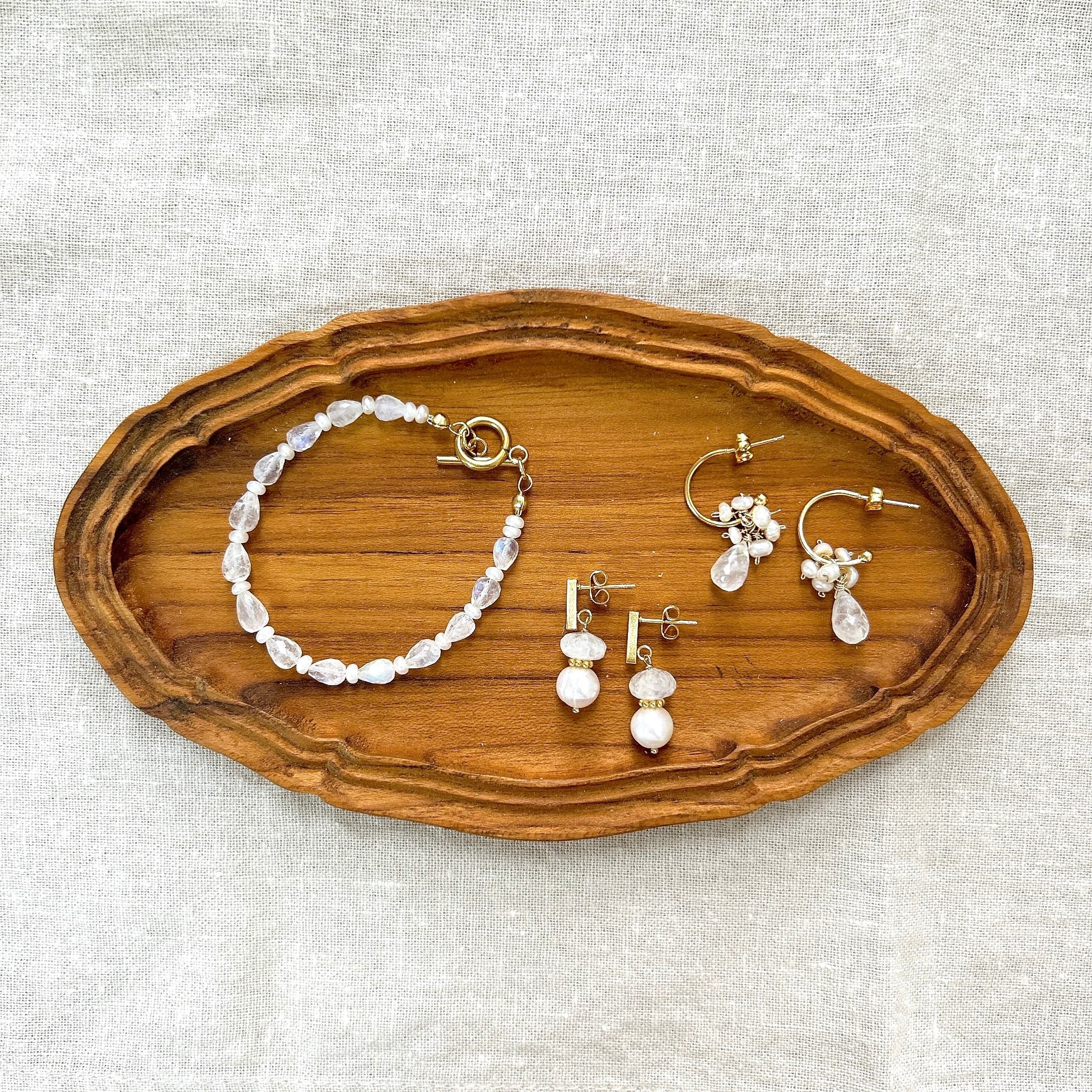 今回ご紹介のワイヤーブレスレットと同じムーンストーンを使っていますので、相性抜群です。