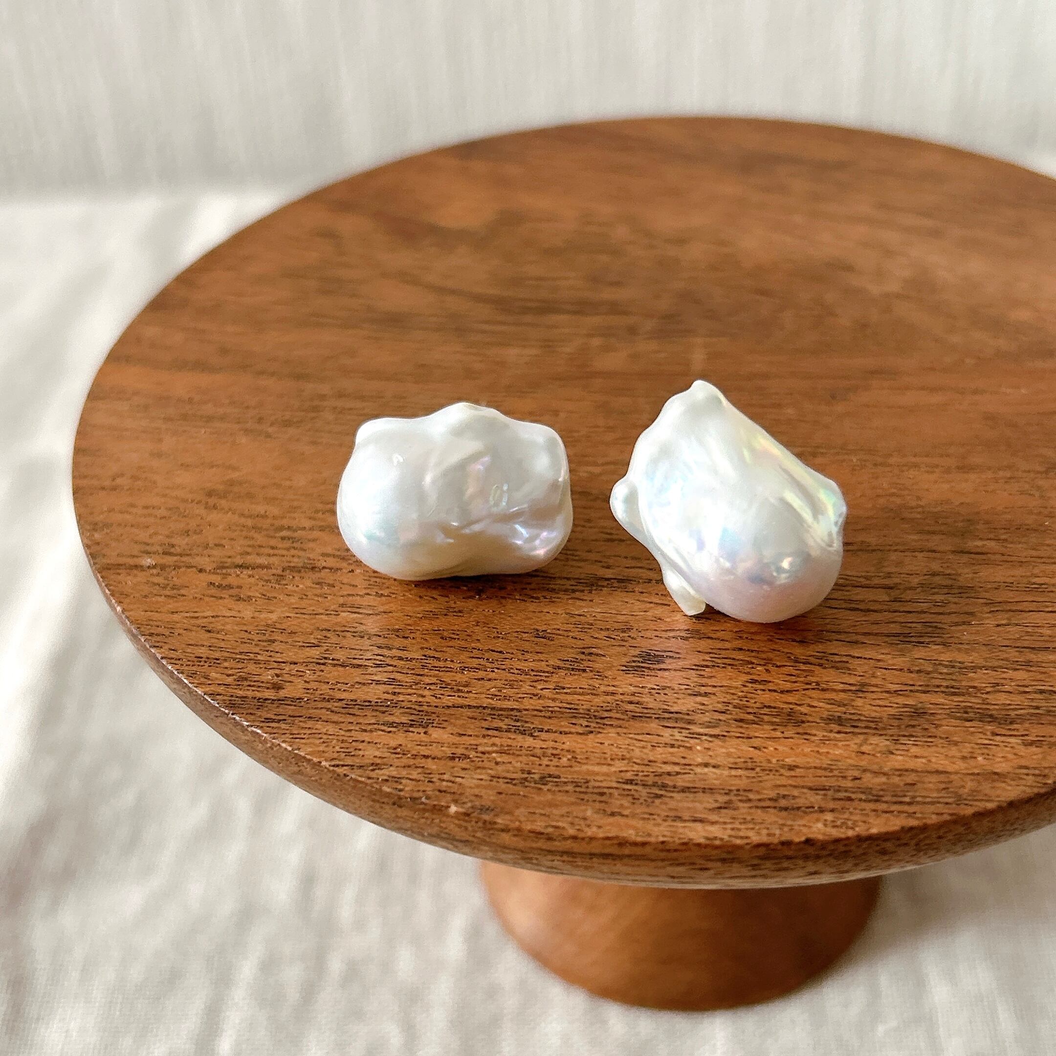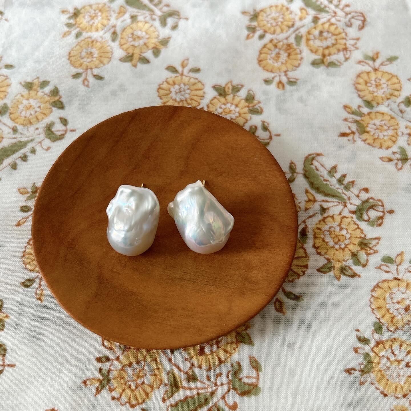 前回の販売では、2点が販売開始と同時に売り切れてしまった、オイスターバロックパールの一粒ピアス。