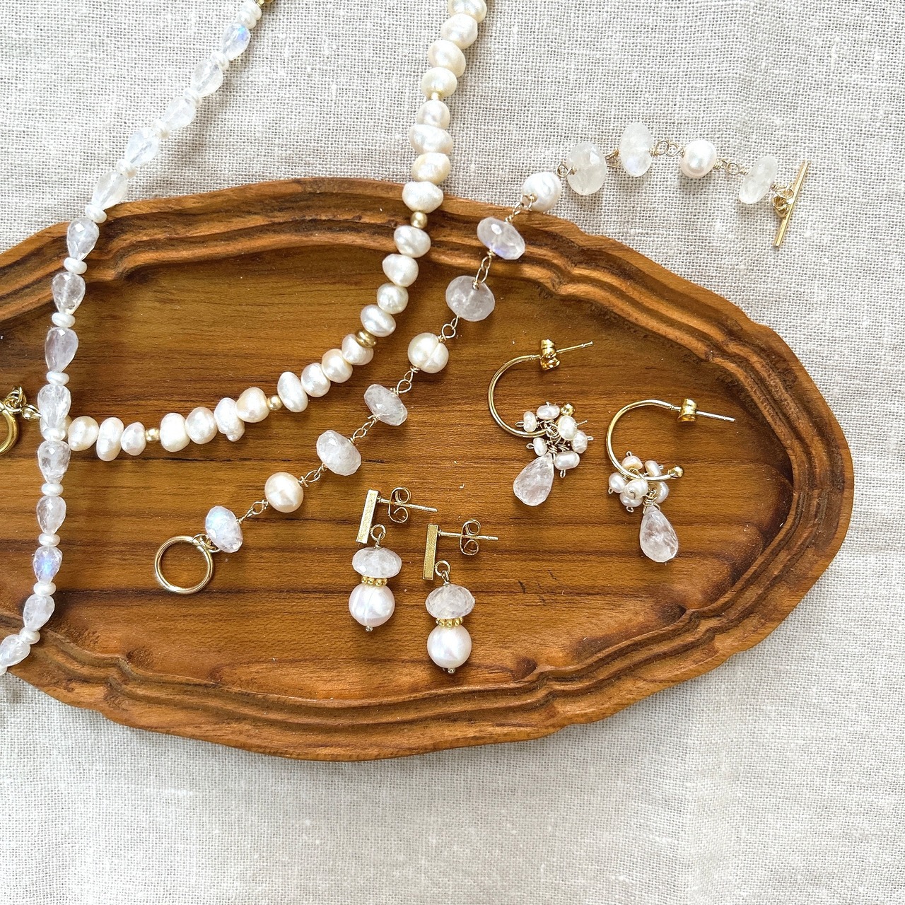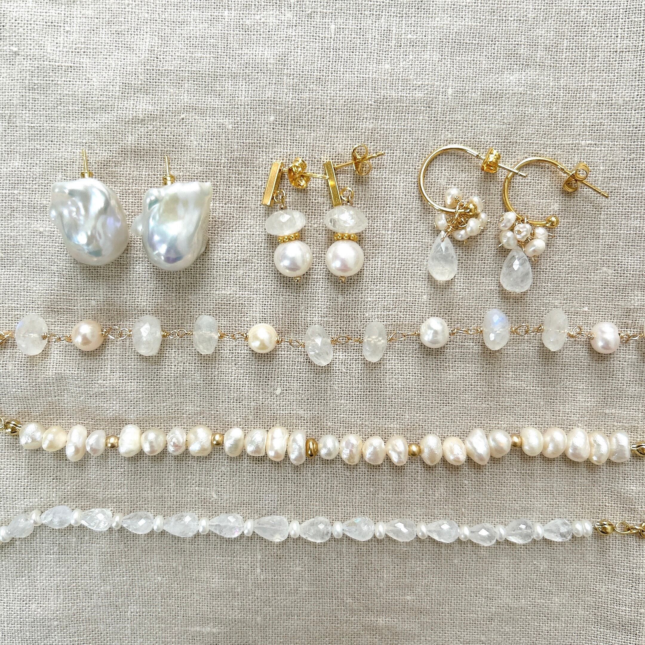 パールのブレスレットと重ね付けしても素敵ですし、ぜひムーンストーンやパールのピアスと合わせてみてください。