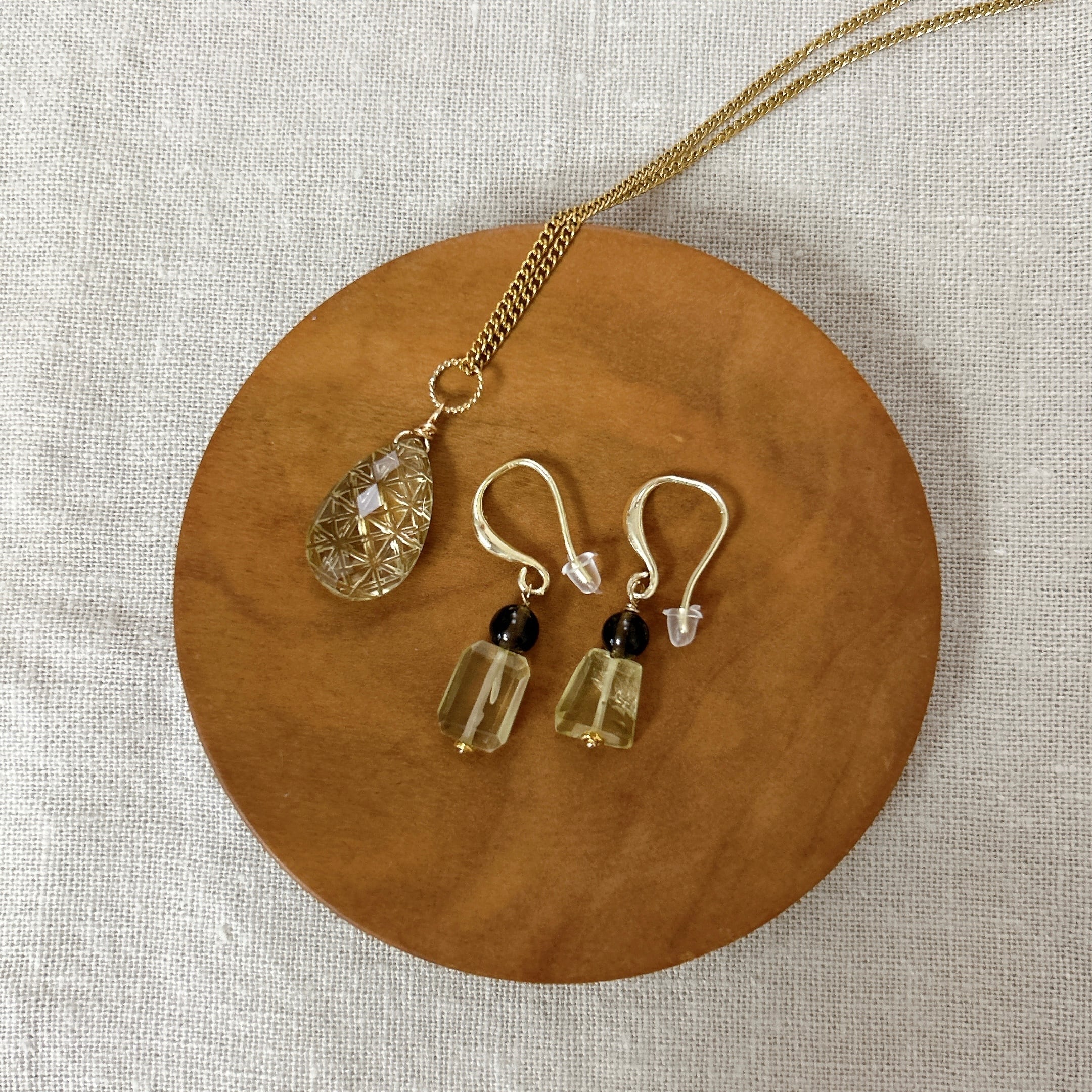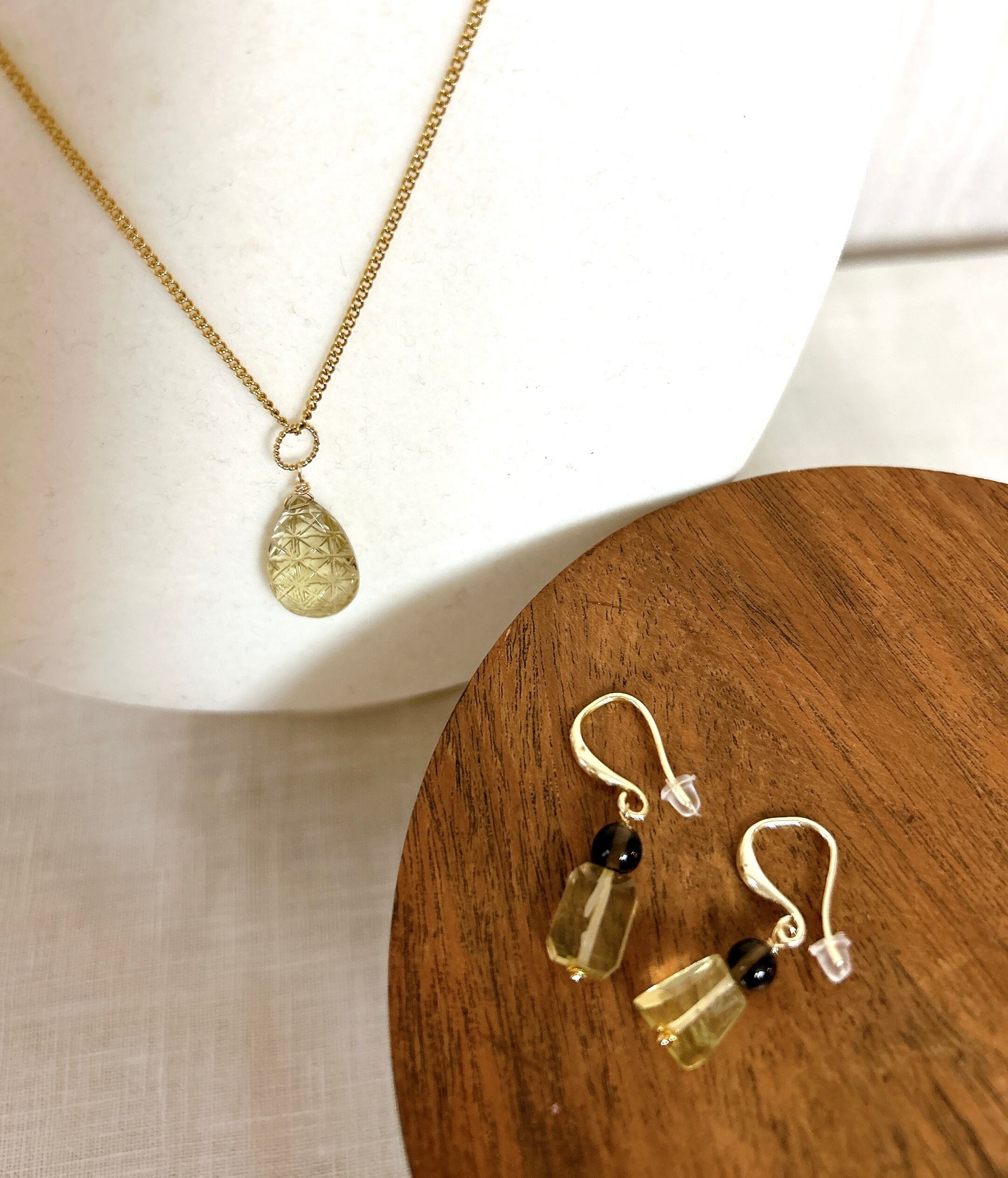 レモンクォーツは少しグレイがかかった落ち着いたお色で、夏だけではなく秋冬にも合わせやすいと思います。