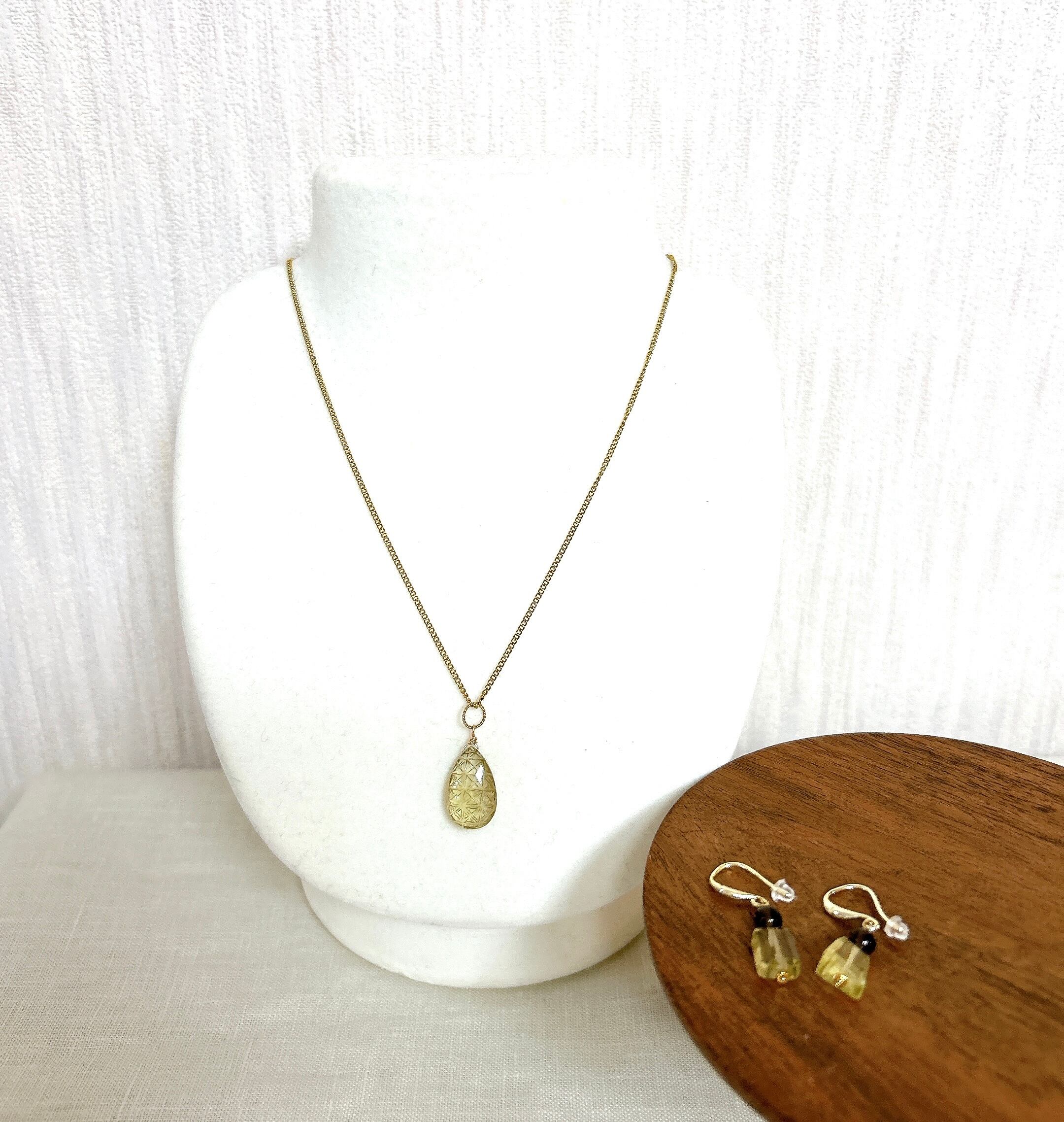 切子ガラスのようなカットが入っている大変美しいレモンクォーツを、シンプルなチェーンネックレスに仕立てました。