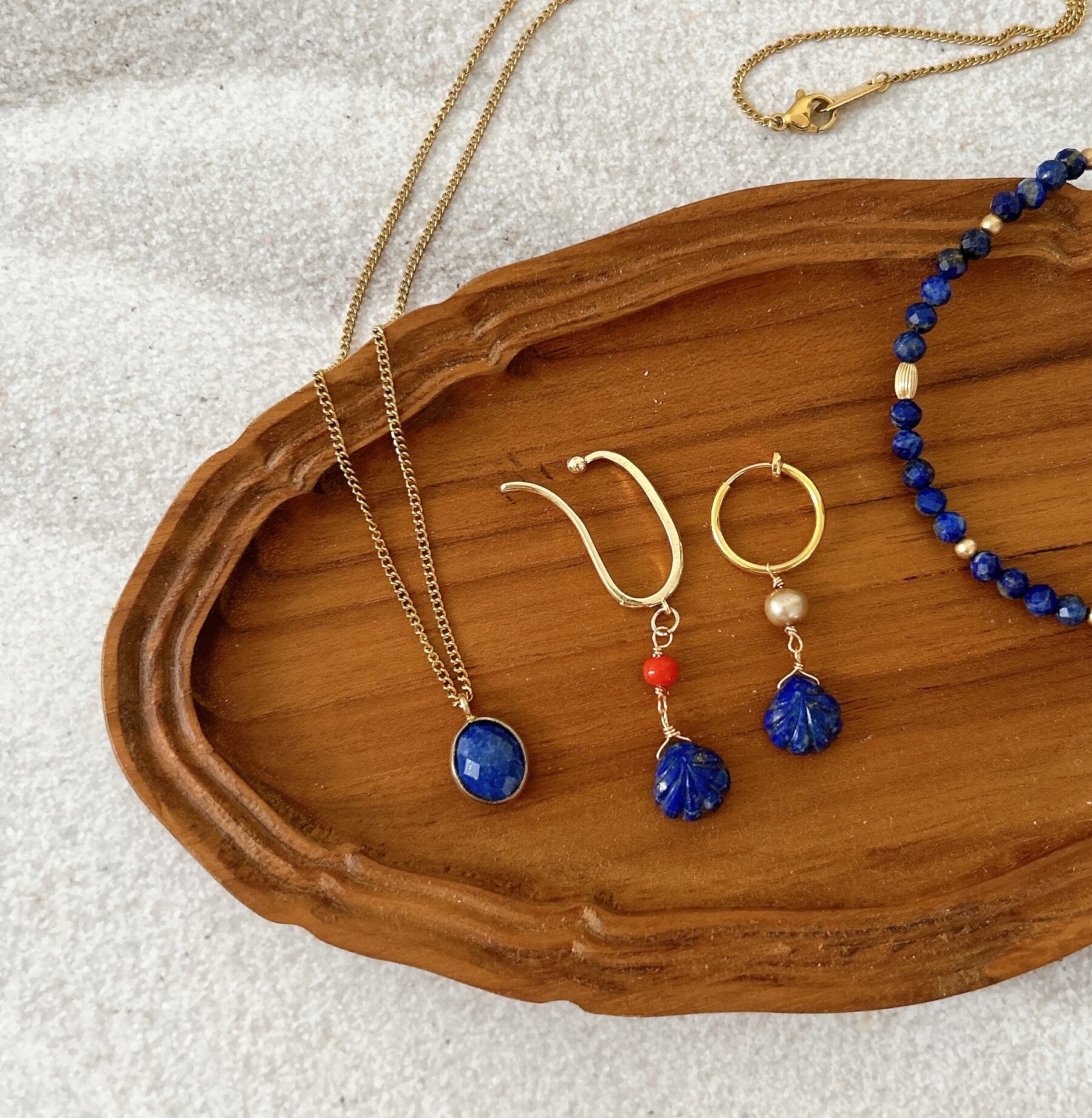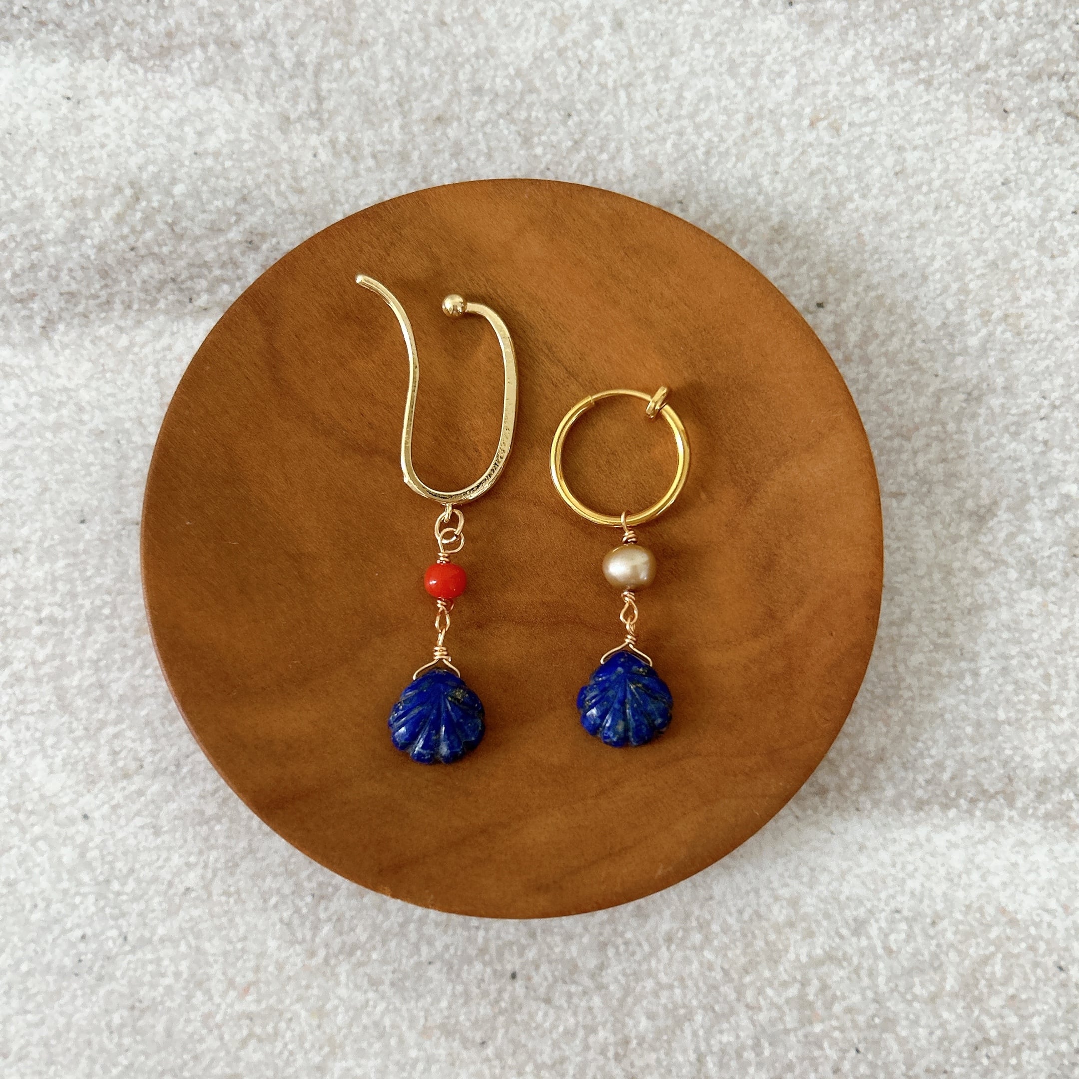 <素材>ラピスラズリ、赤珊瑚/淡水パール、K14GF(イヤーカフ、ピアス)、サージカルステンレス(イヤリング)