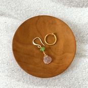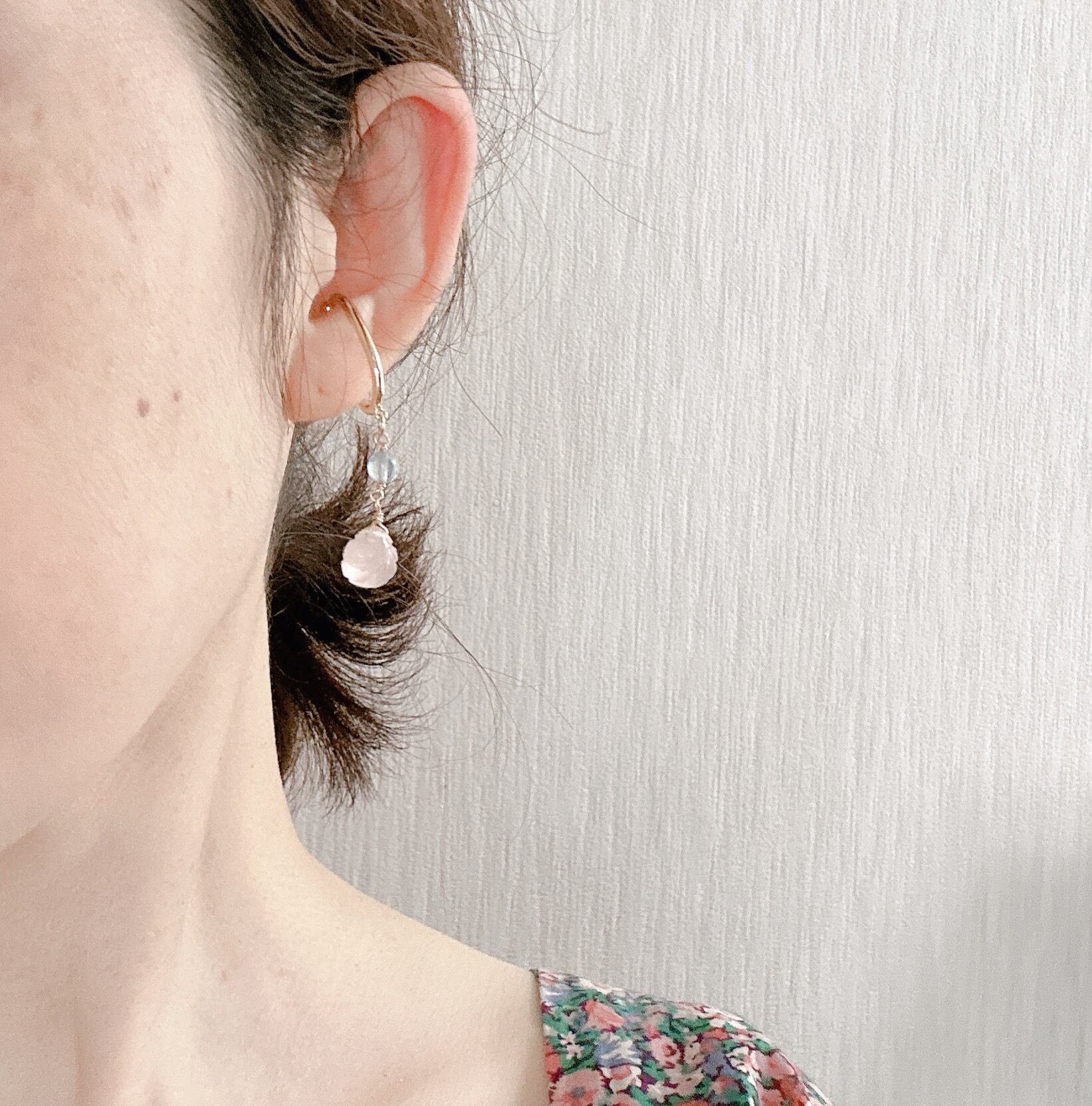 <素材>ローズクォーツ、アクアマリン/クリソプレーズ、K14GF(イヤーカフ、ピアス)、サージカルステンレス(イヤリング)