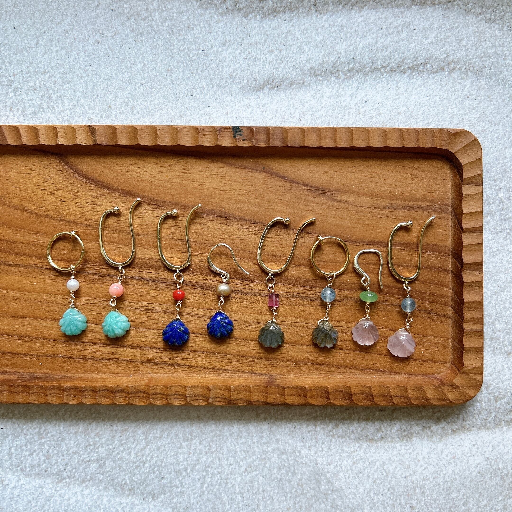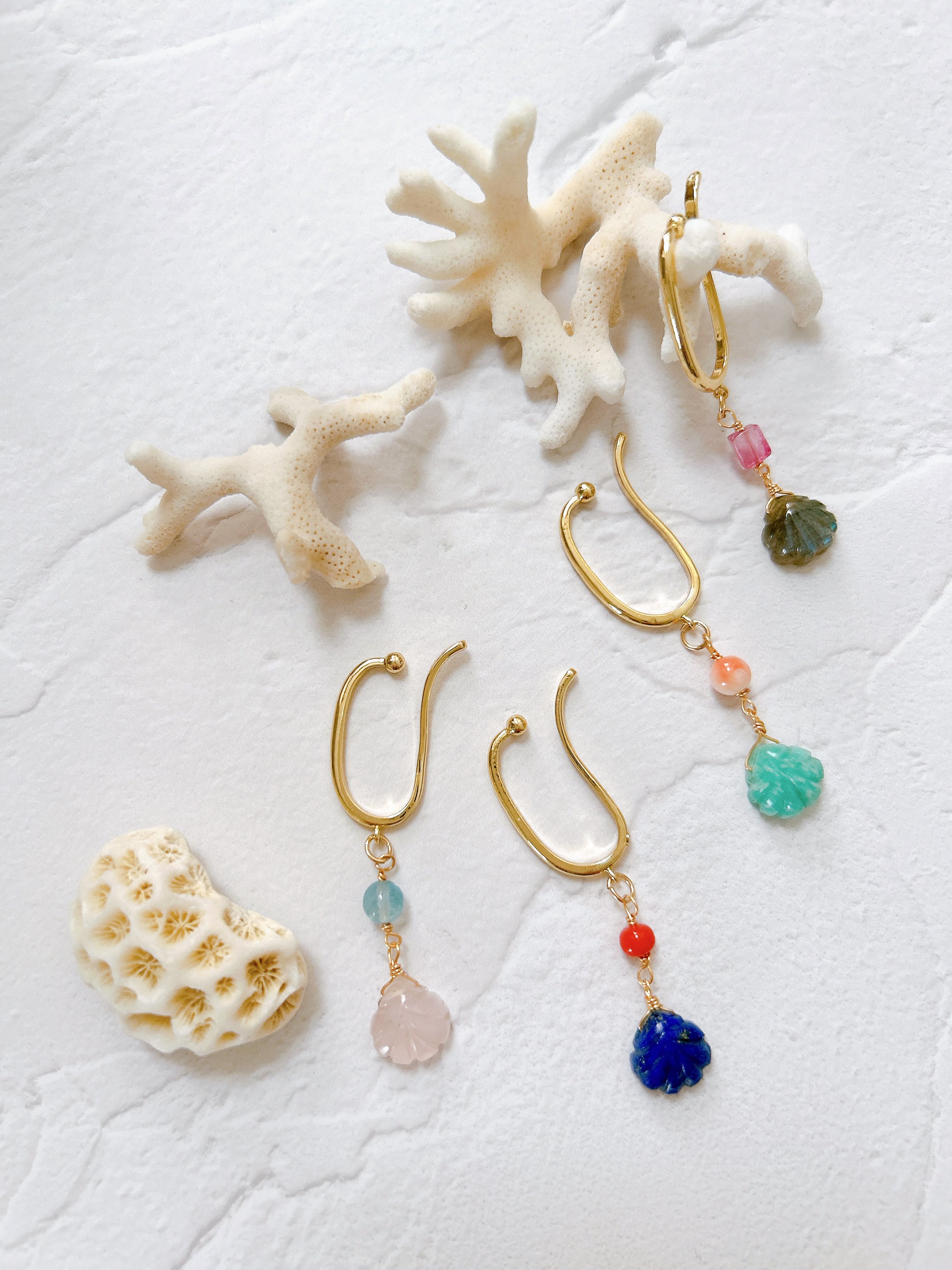 夏らしいシェル型にカービングされた天然石のイヤーアクセサリー。atelier nar初のイヤーカフが登場です!