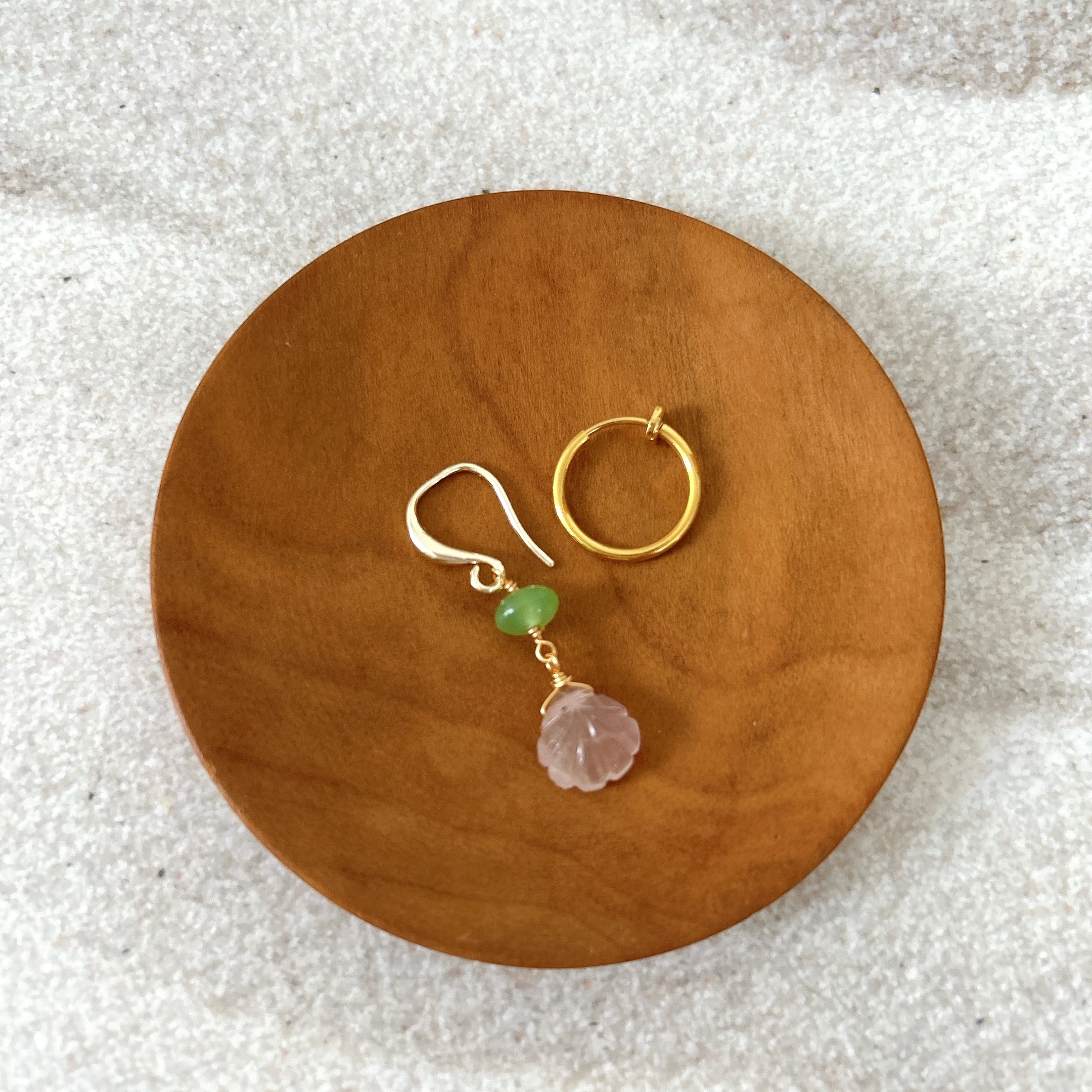 シェルカービングのイヤーアクセサリー<ローズクォーツ> P-123