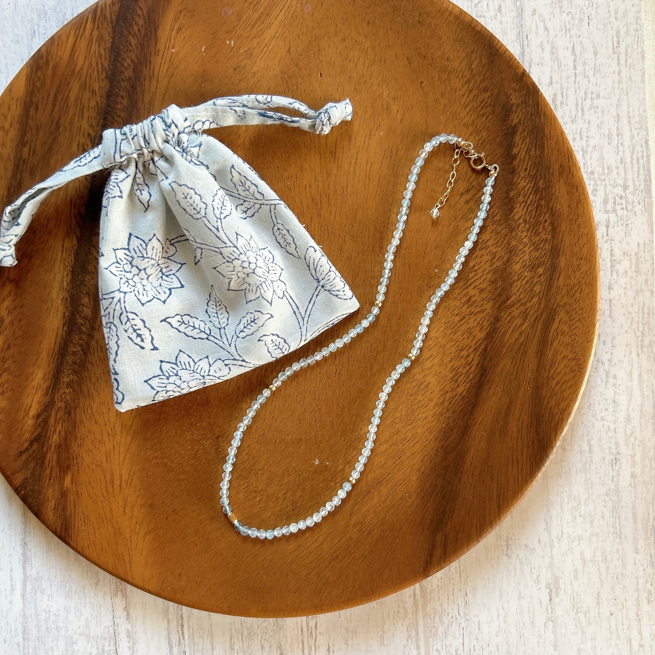天然石のカラーに合わせた、ブロックプリントの巾着に入れてお届けします。(写真とデザインが変わることがございます)