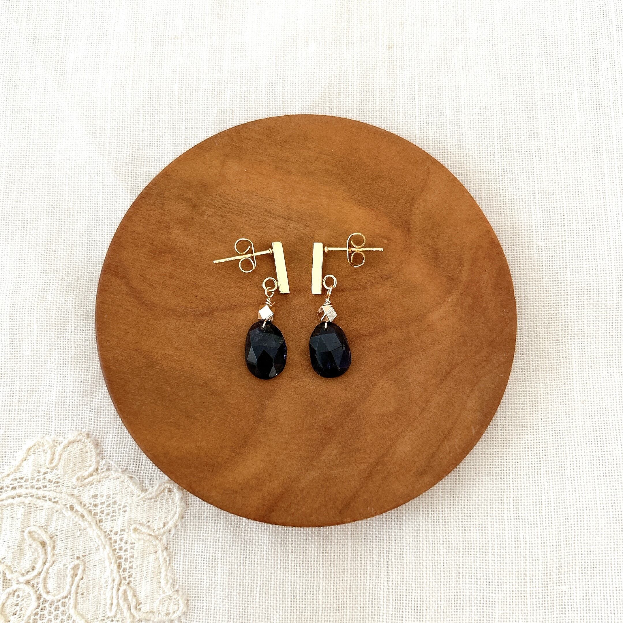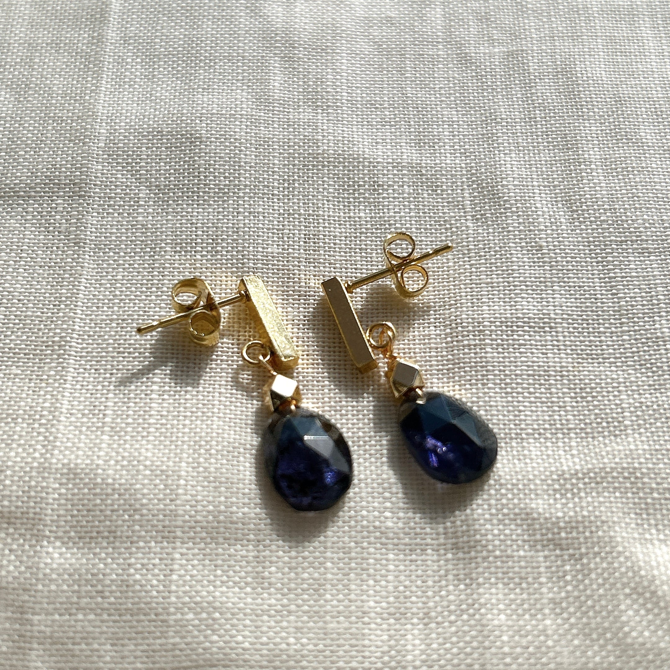 <素材>アイオライト、K14GF(ゴールドビーズ、ワイヤー)、サージカルステンレス(ピアス金具)