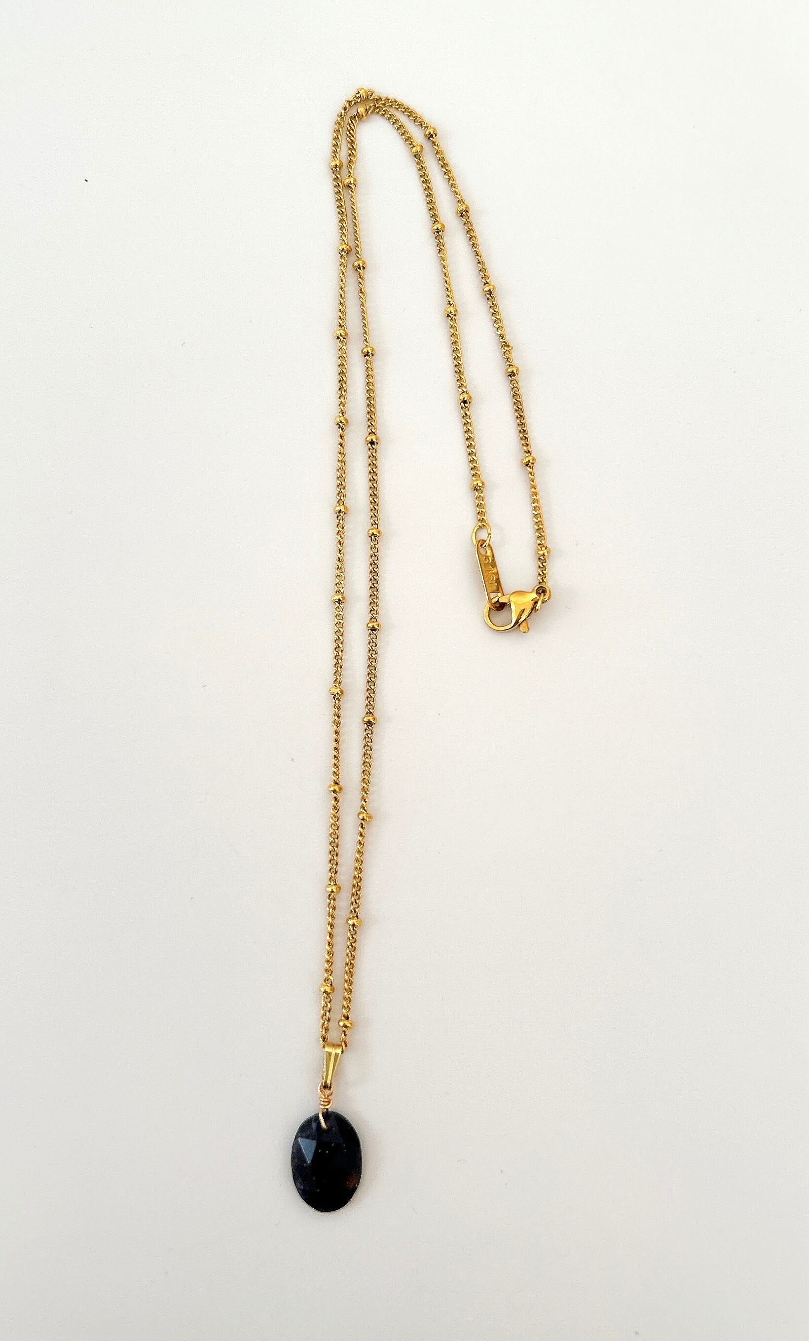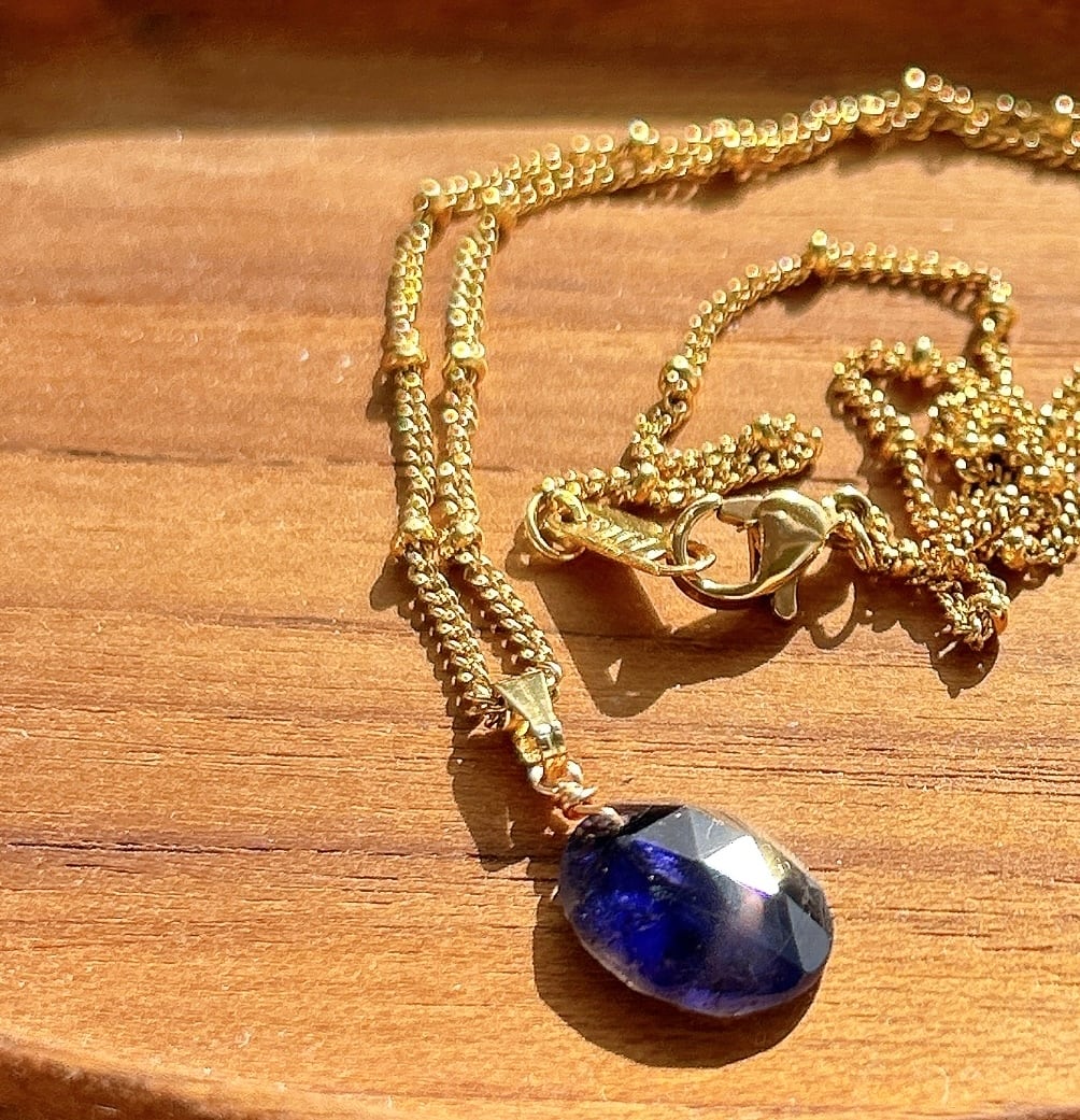 <素材>アイオライト、サージカルステンレス(チェーン、留め具、バチカン)、K14GF(ワイヤー)