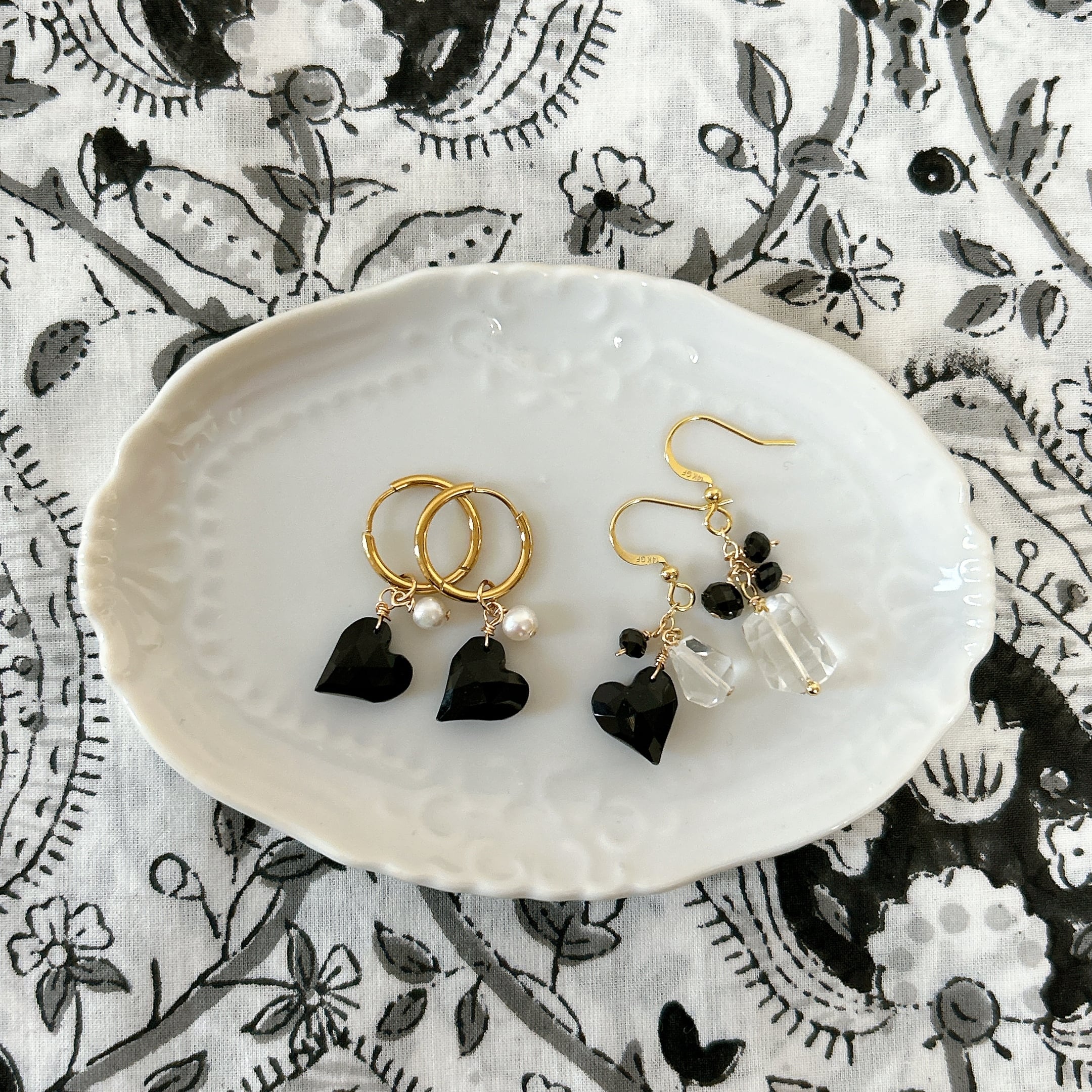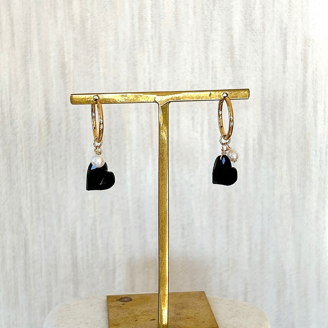 キュートなブラックオニキスのハートを見つけましたので、2種のピアスイヤリングに仕立てました。