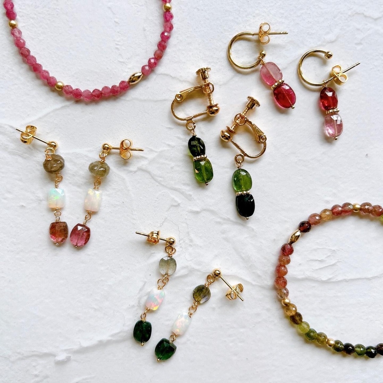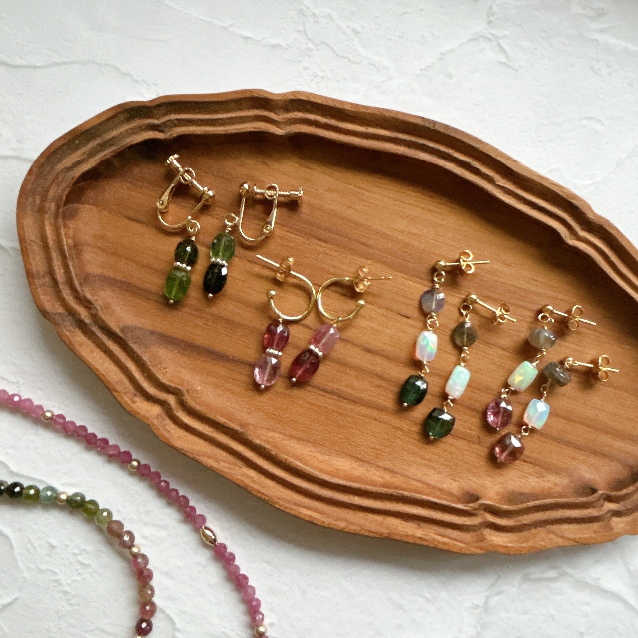 美しいお色で春待ちの気分にぴったりな、カラフルなトルマリンのピアス(イヤリング)。