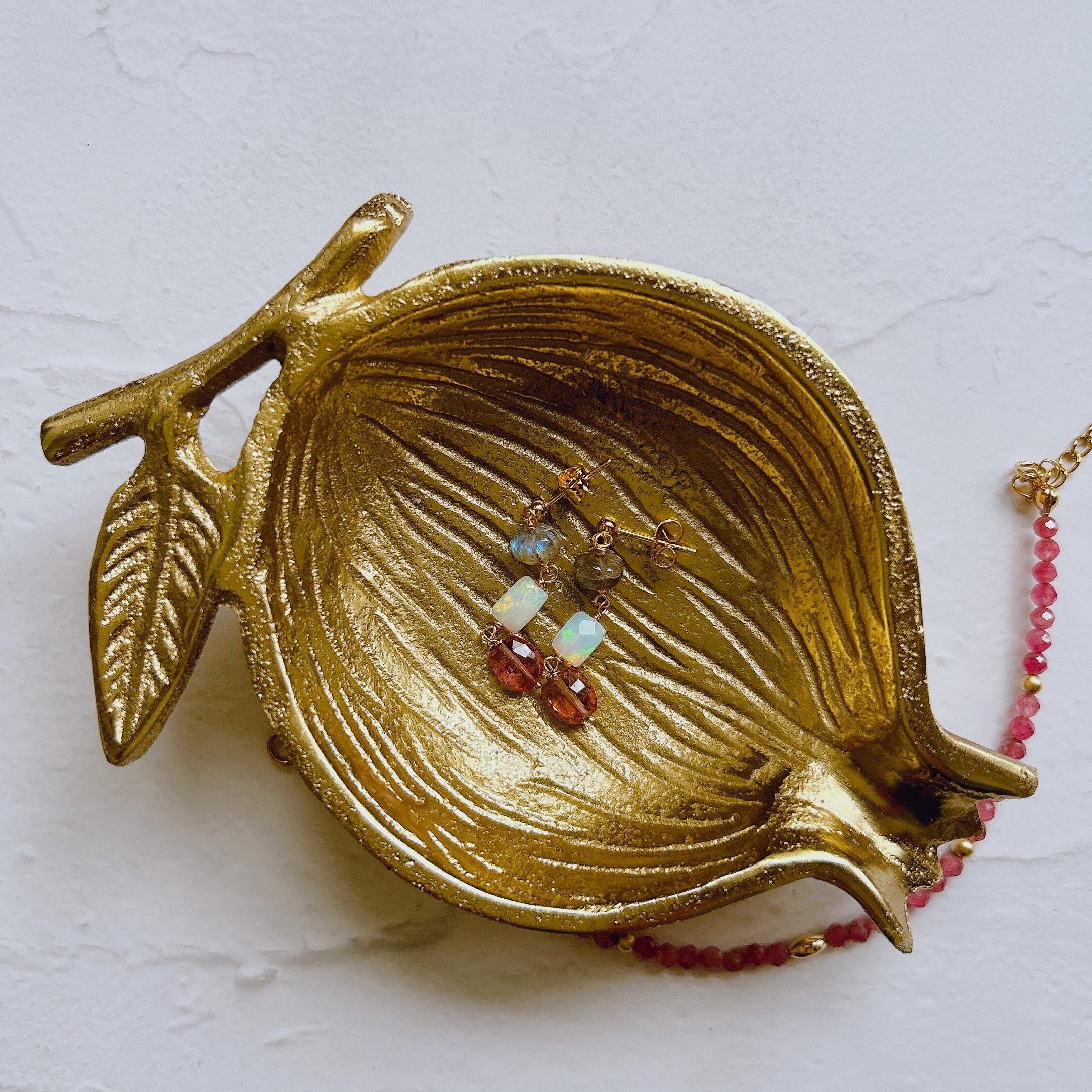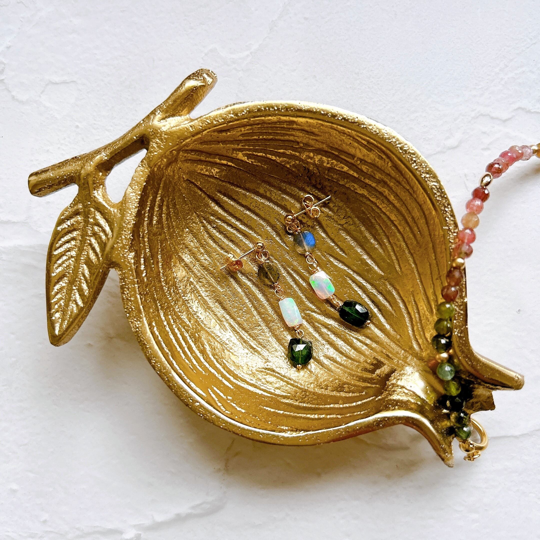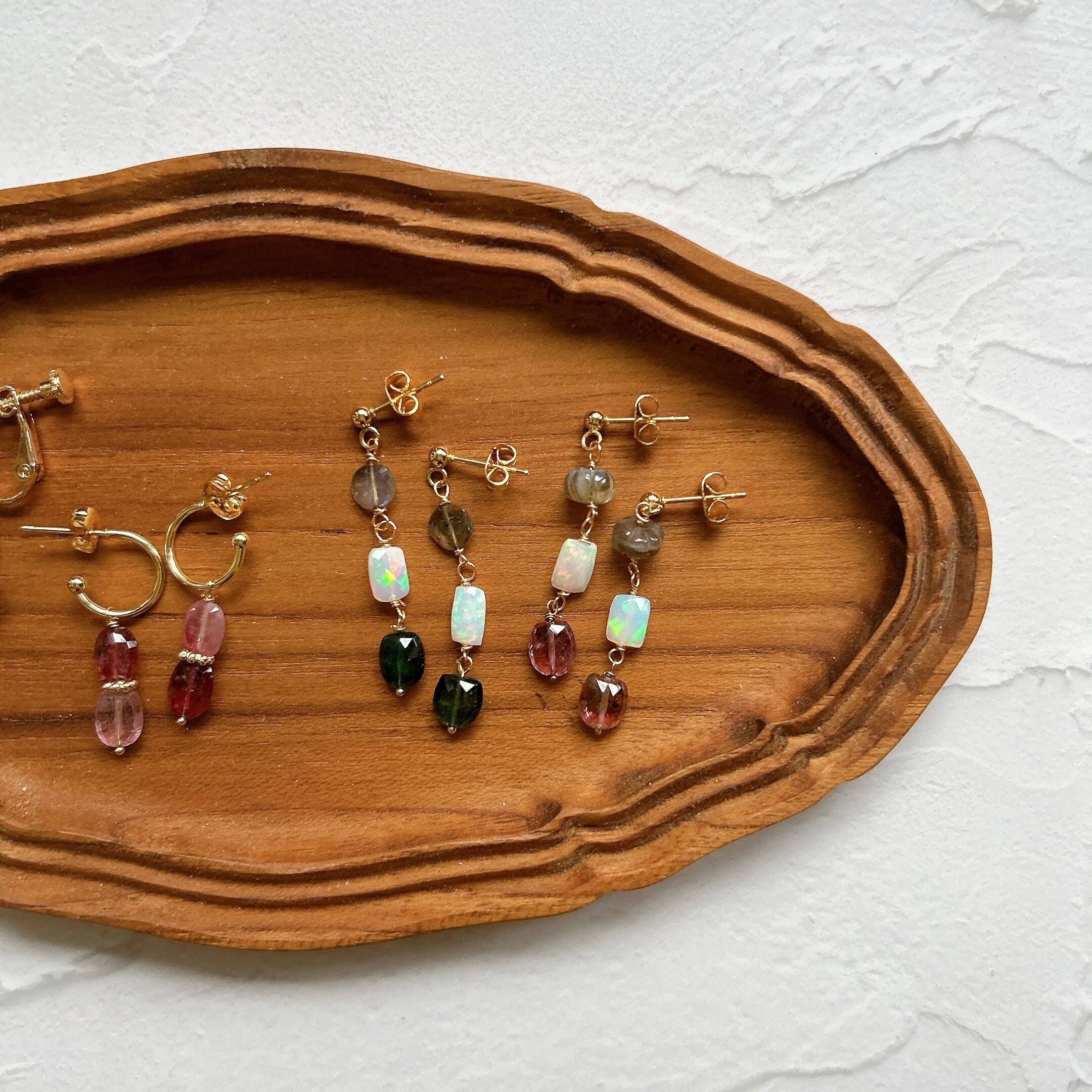 <素材>トルマリン、エチオピアオパール、ラブラドライト、K14GF(ピン、ワイヤー)、サージカルステンレス(ピアス金具)