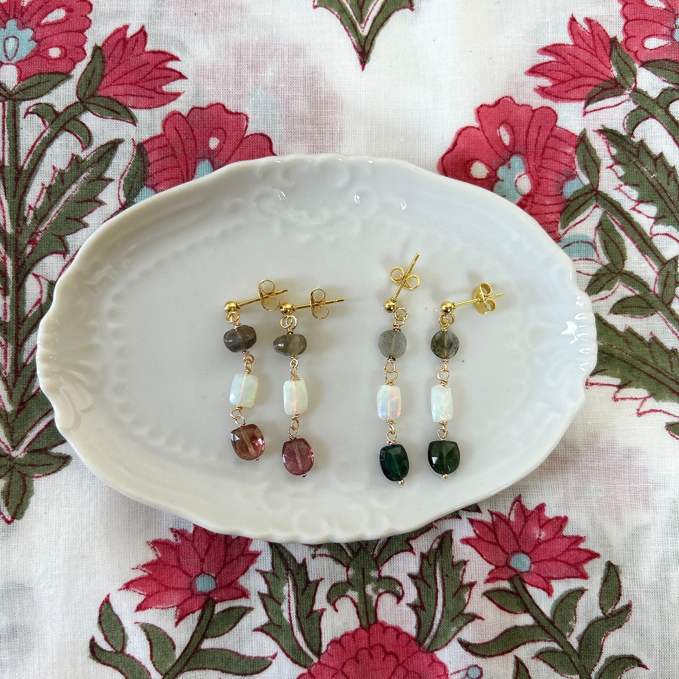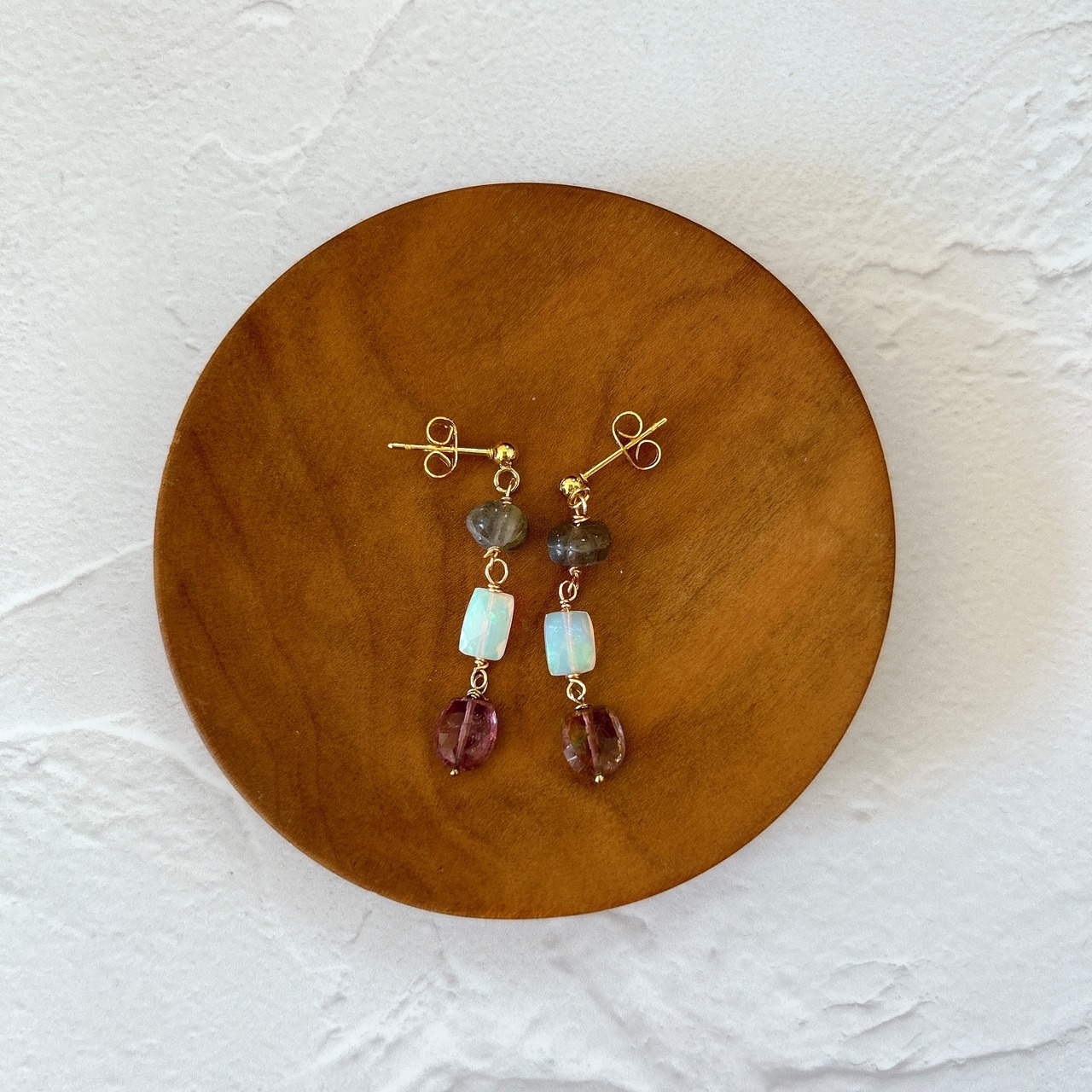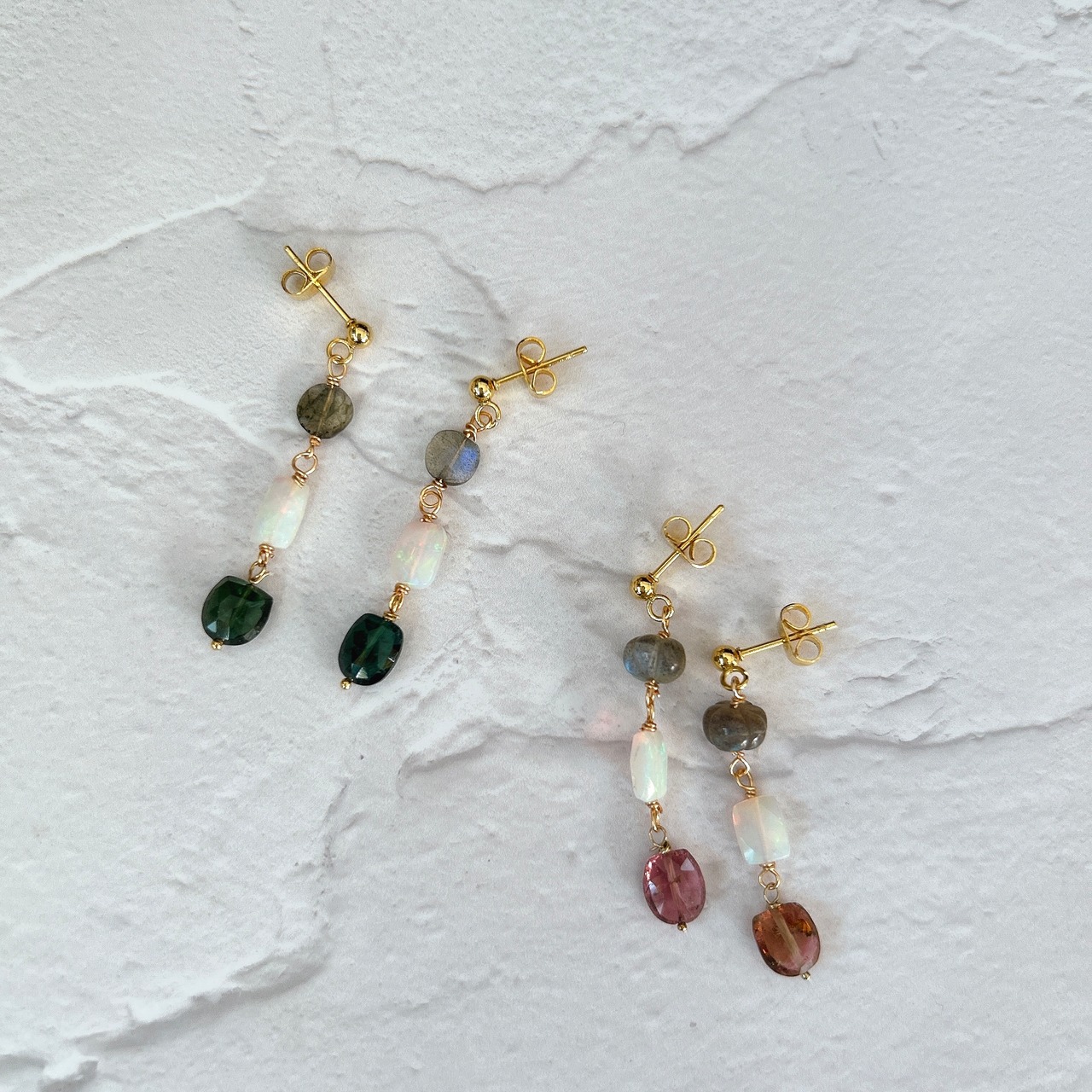 トルマリンとオパール、ラブラドライトのピアス P-151