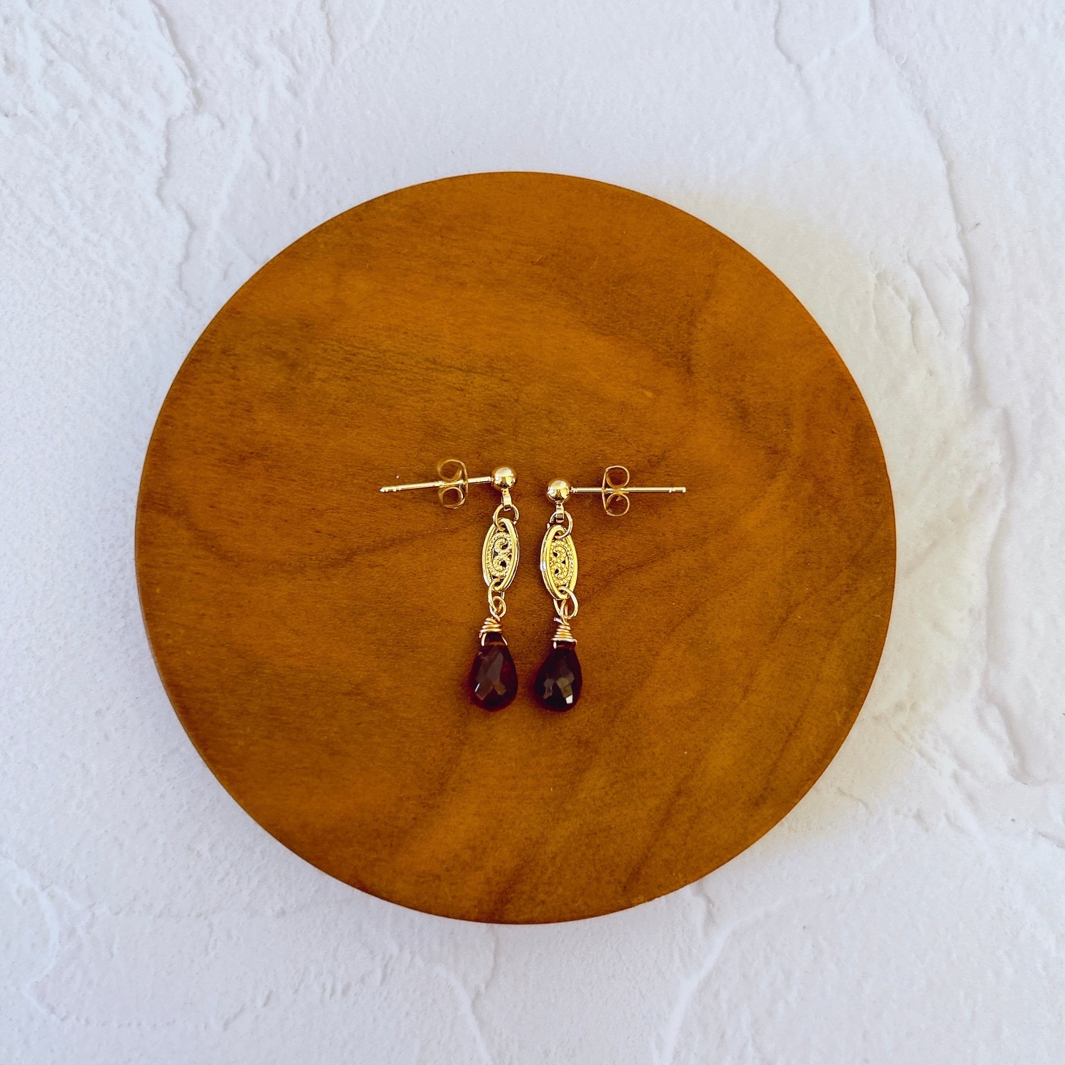 フィグリーパーツとガーネットドロップのピアス・イヤリング P-149