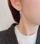 こちらは、宝石質の大変美しいガーネットを繊細な作りのK14GFパーツと合わせた、小ぶりでシンプルなピアス(イヤリング)です。さりげなく上品なお作りですので、オンオフ問わずお使いいただけそうですね。
