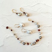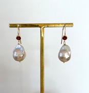 ガーネットフックとグレーオイスターバロックのスペシャルピアス P-145
