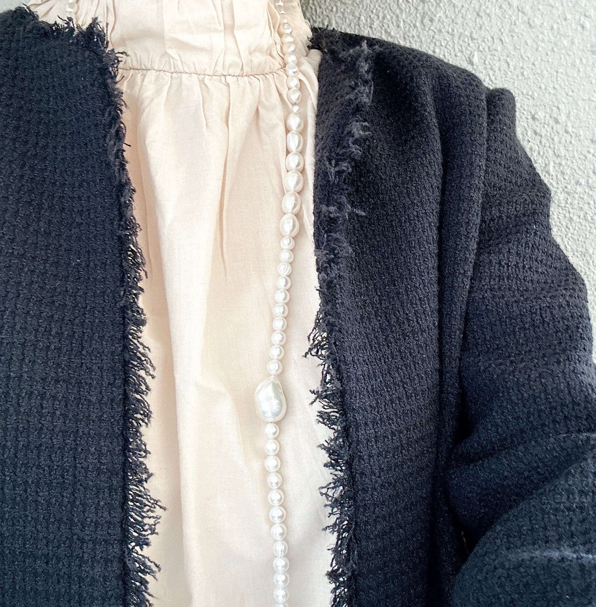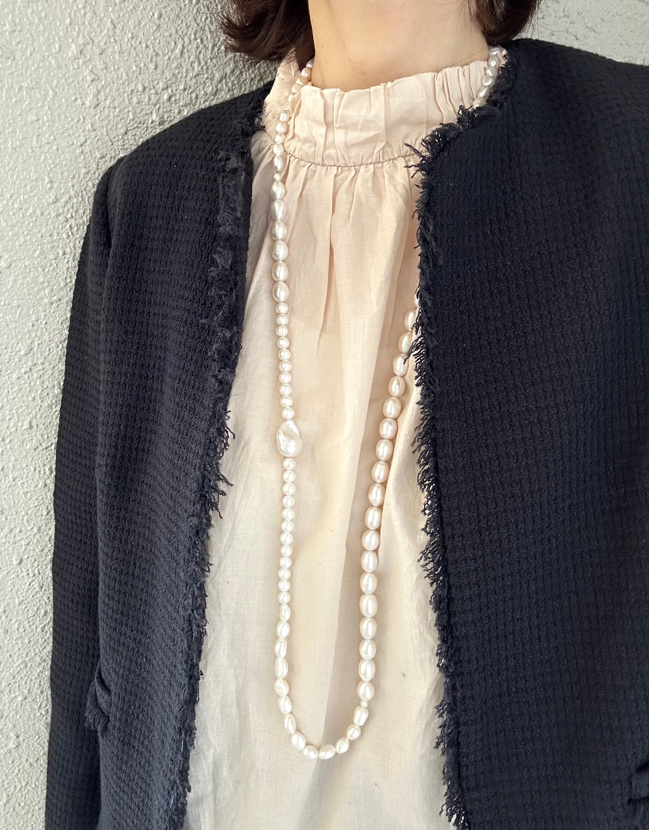 2年前にもパールのロングネックレスをお出ししたことがあるのですが、長さもパールのボリュームもアップして、よりゴージャスな仕上がりになっています。