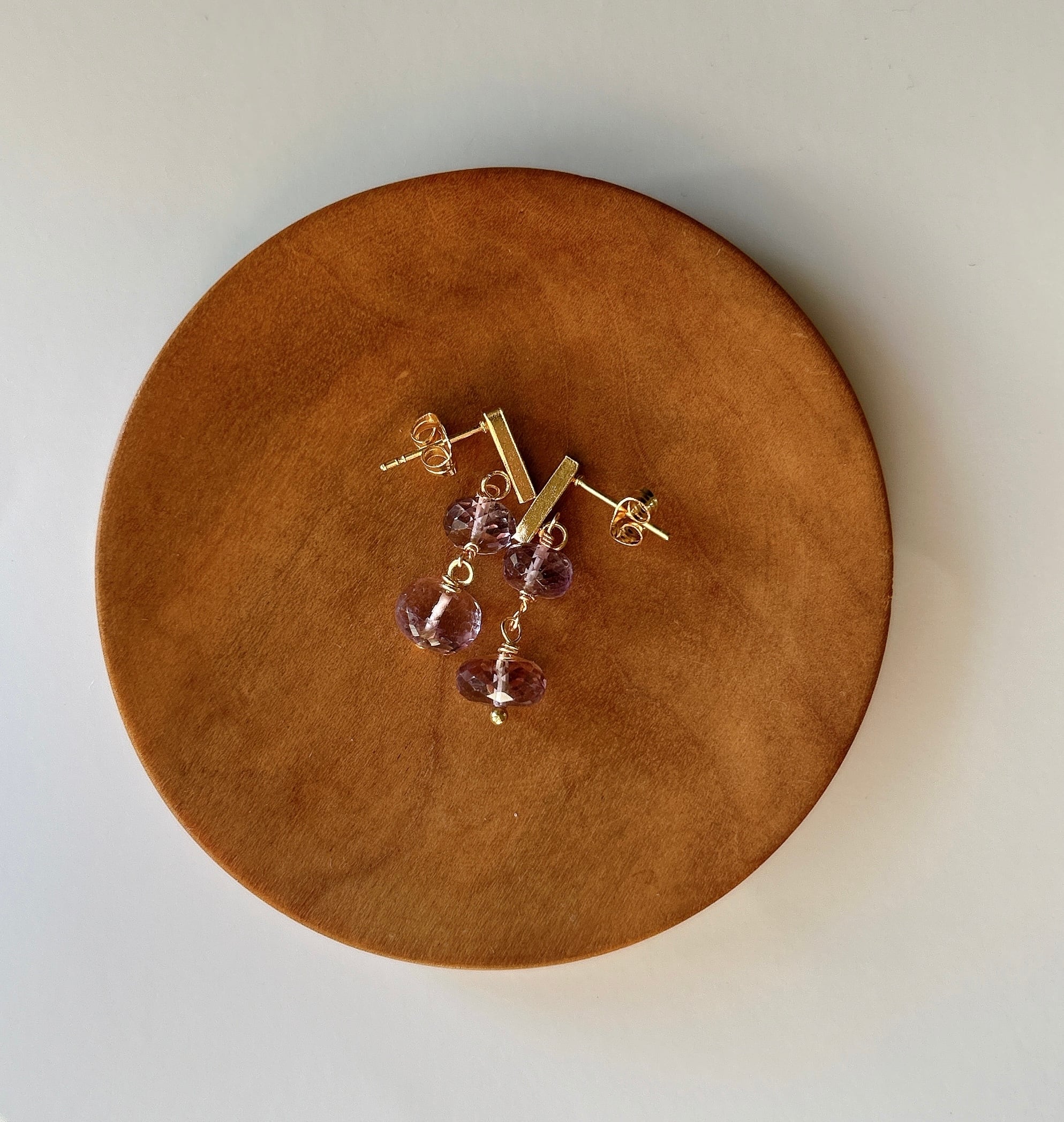 こちらは、シトリンで同じデザインをお出しして大変ご好評をいただいた、ボタンカットの石を二連に繋いだピアス(イヤリング)です。