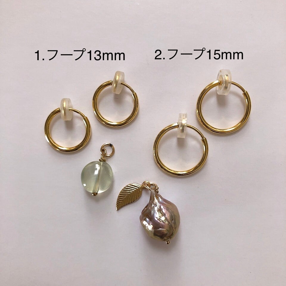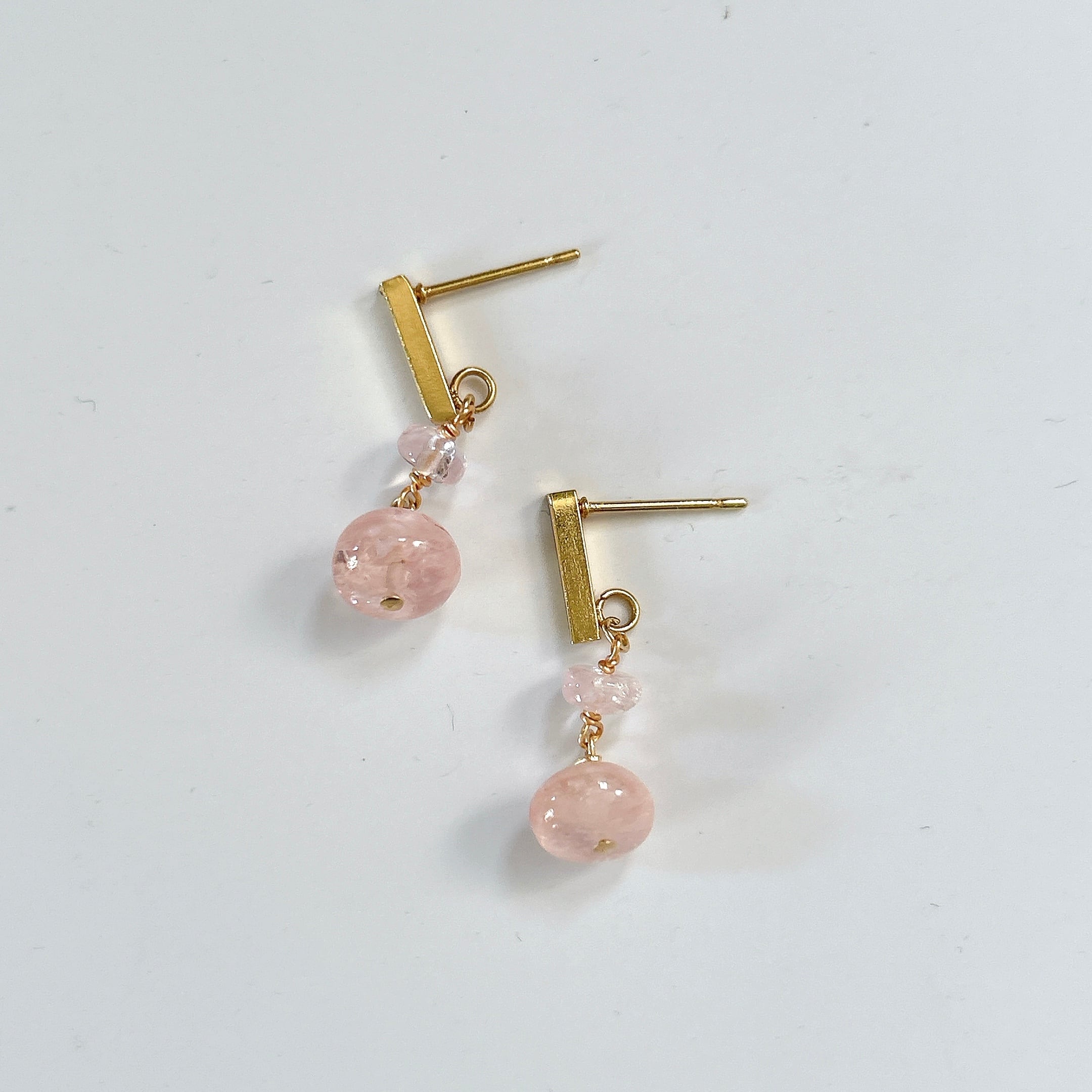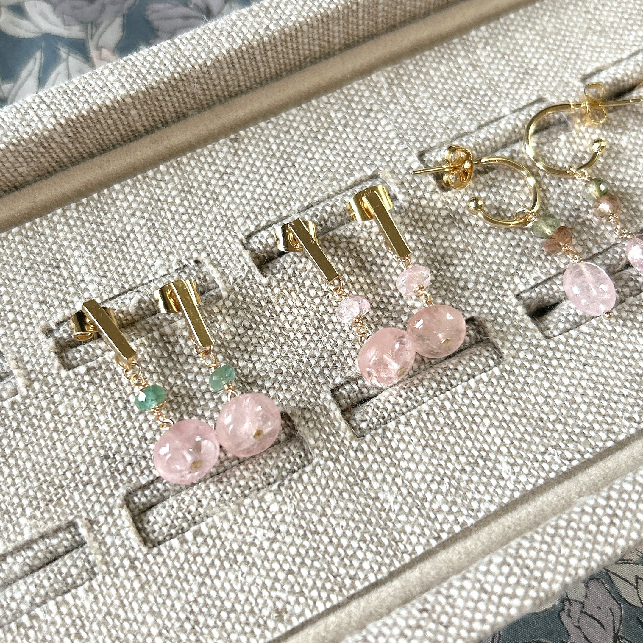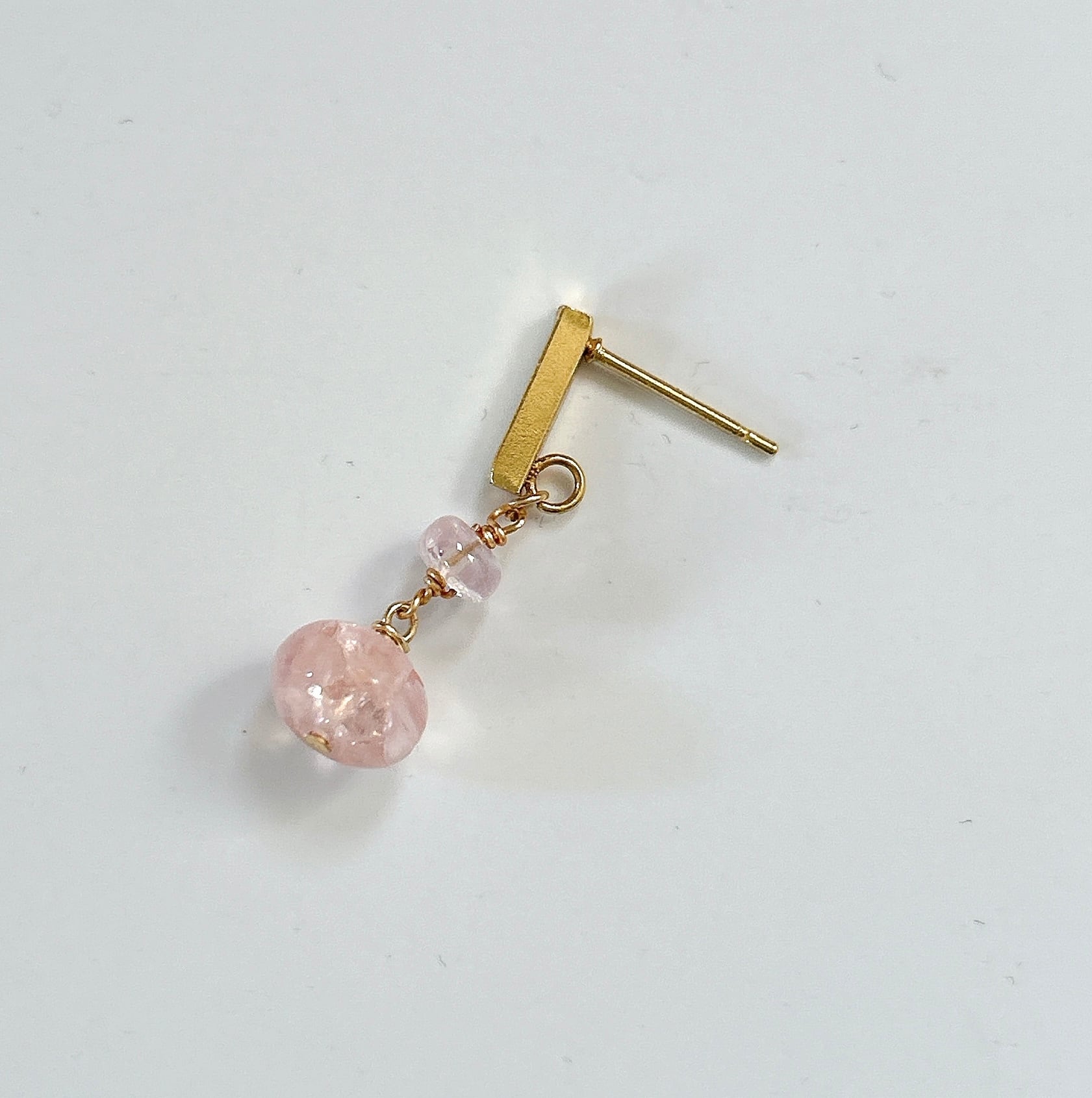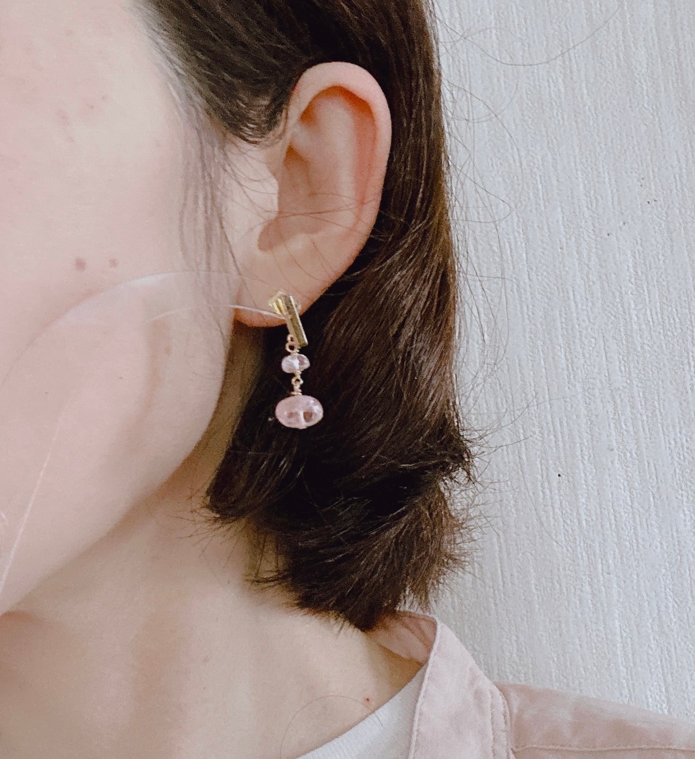 <素材>天然石(モルガナイト)、サージカルステンレス(ピアス金具)、K14GF(ワイヤー、ピン)