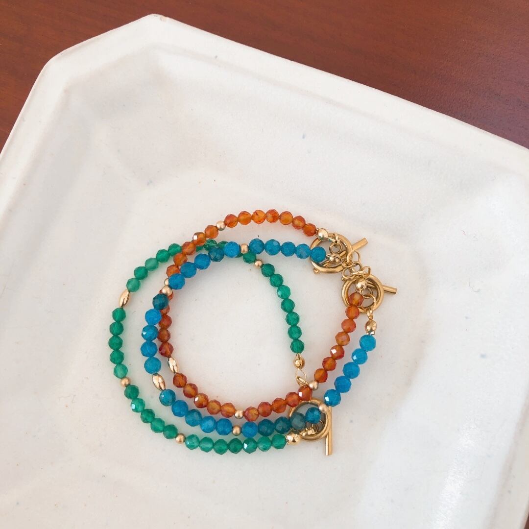 色とりどりの天然石を使った、シンプルなブレスレット。