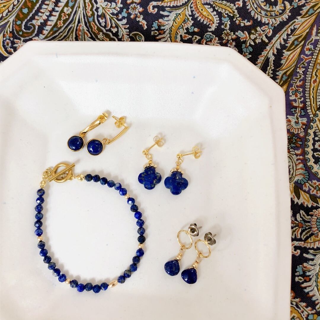 ラピスラズリを使ったピアスもご用意していますので、ぜひお揃いでどうぞ。