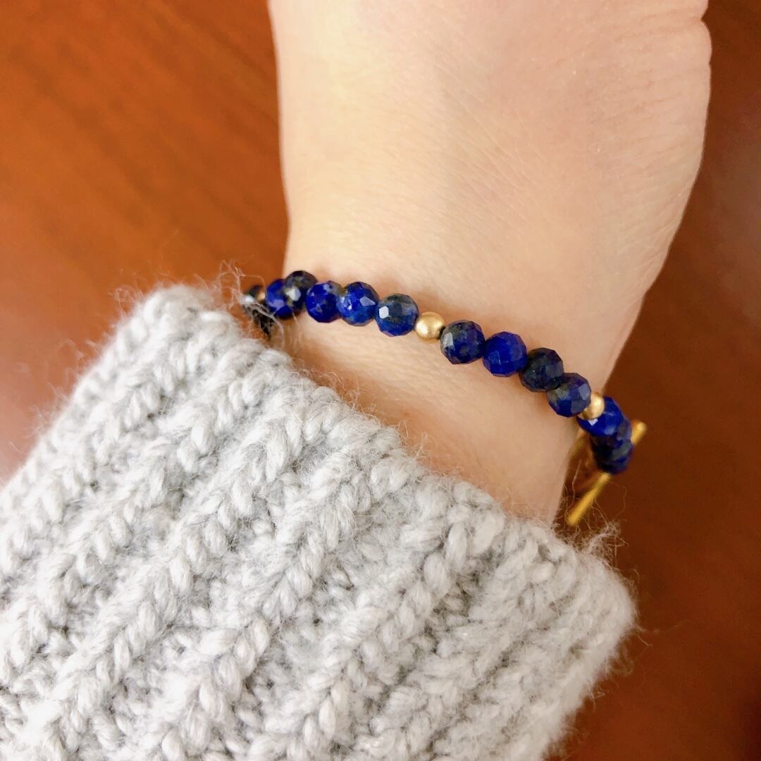 シックな藍色なので、さりげなくつけられますよ。特にゴールドジュエリーとの相性が良いです。