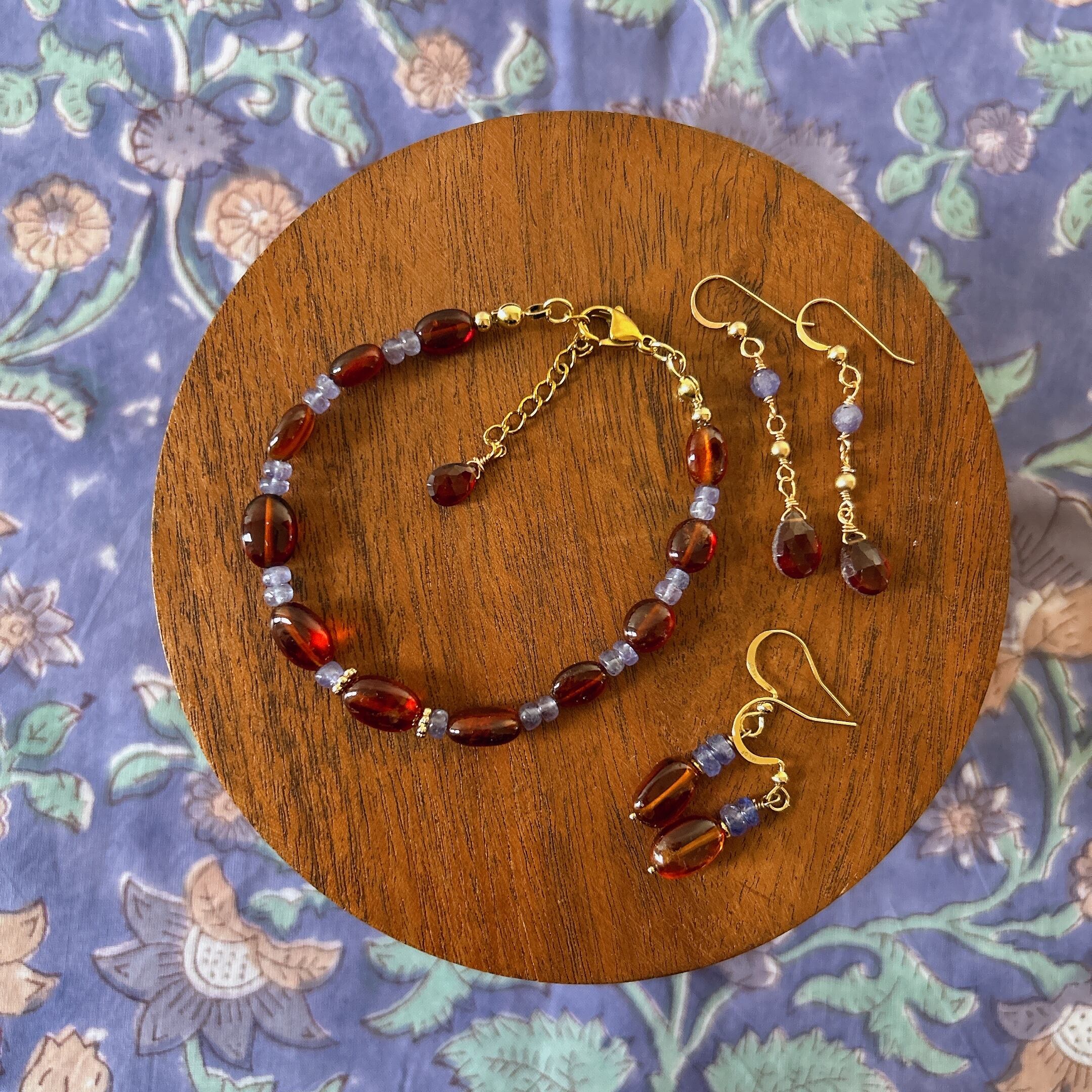 ブラウン系とブルーを合わせるのが好きなので、タンザナイトの4mmカットビーズ、マットゴールドのビーズを合わせてみました。ブルーつながりでデニムにも合うと思います!