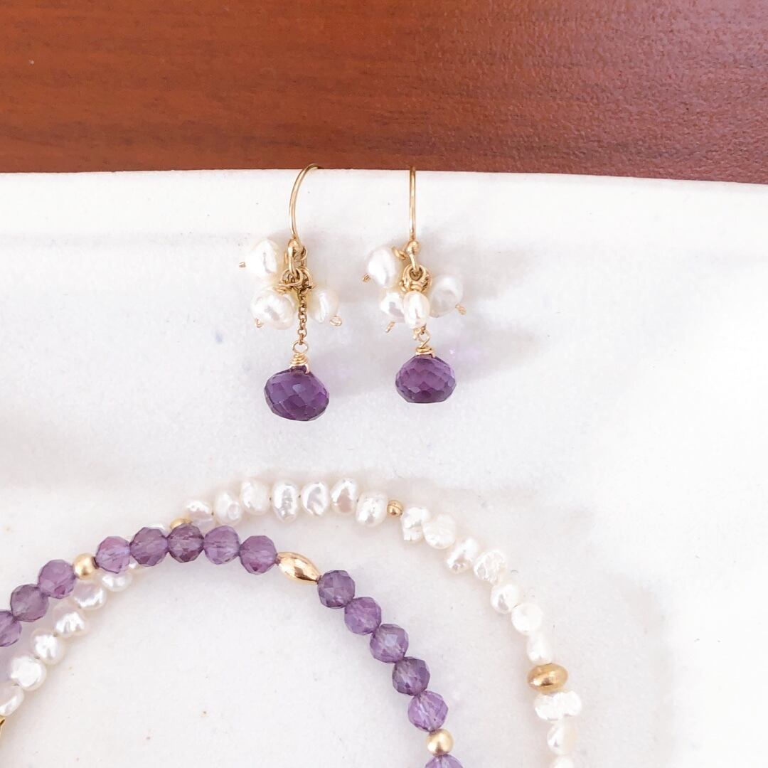 アメジストを使ったピアスやブレスレットもご用意していますので、ぜひお揃いでどうぞ。