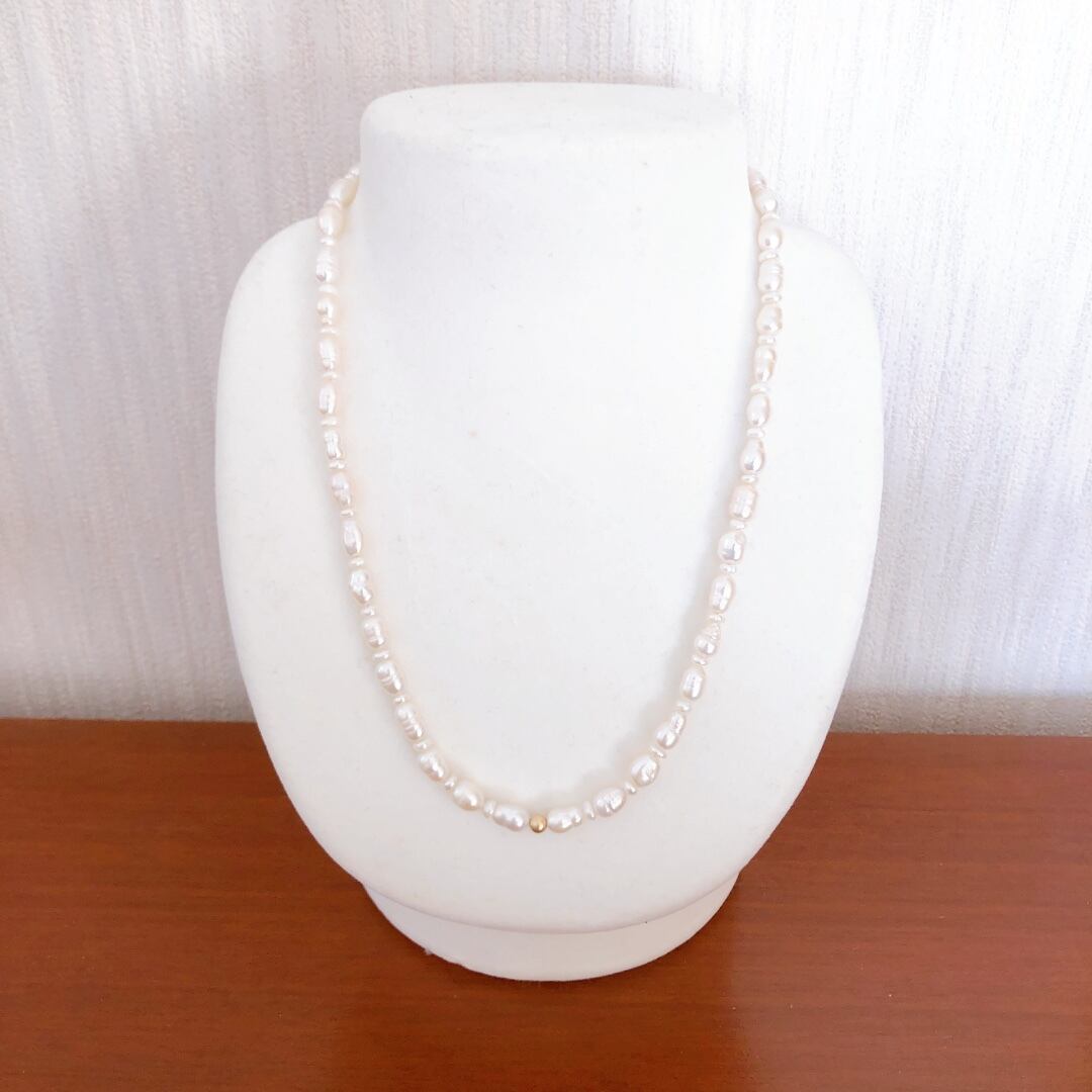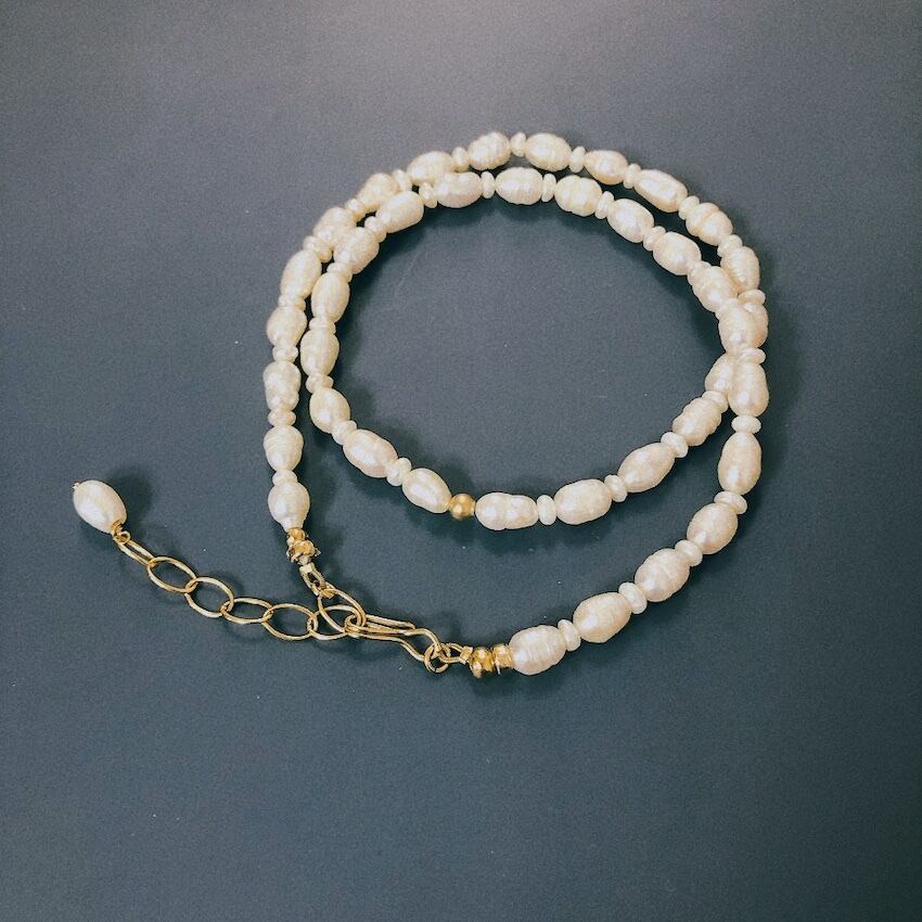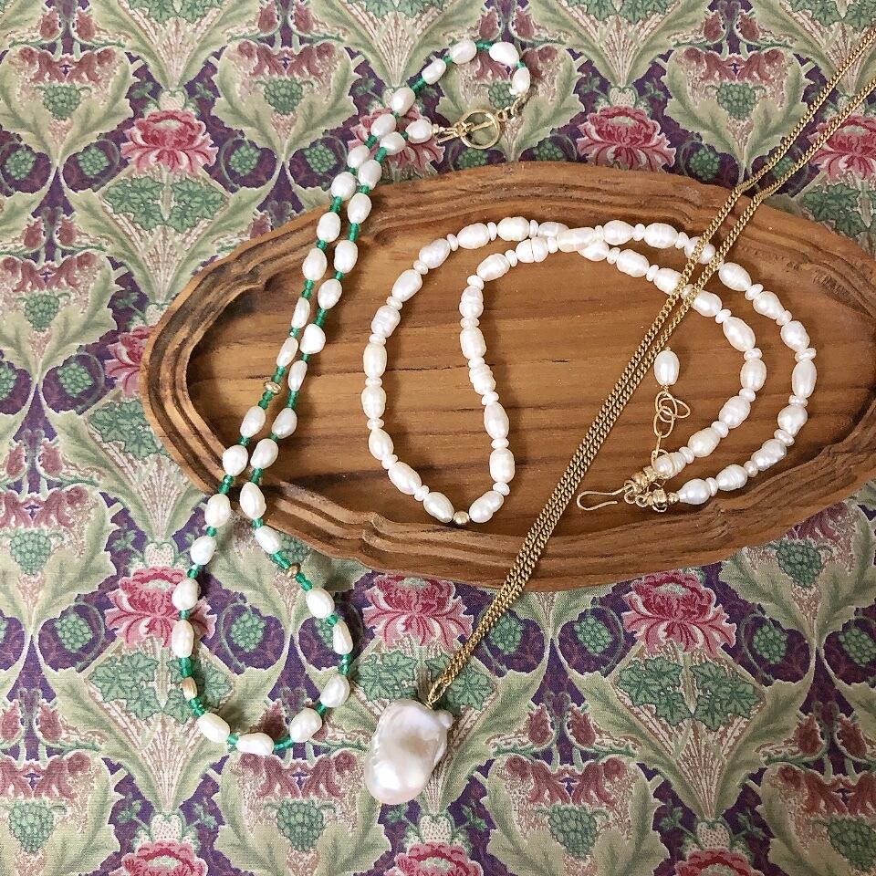 ※淡水パールの形は、自然のもののため1点1点異なります。写真のものと全く同じとは限りませんが、同様の雰囲気のものをお送りいたしますのでご了承くださいませ。