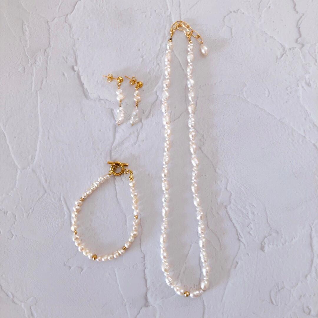 パールを使ったピアスやブレスレットも豊富にご用意していますので、ぜひお揃いでどうぞ。