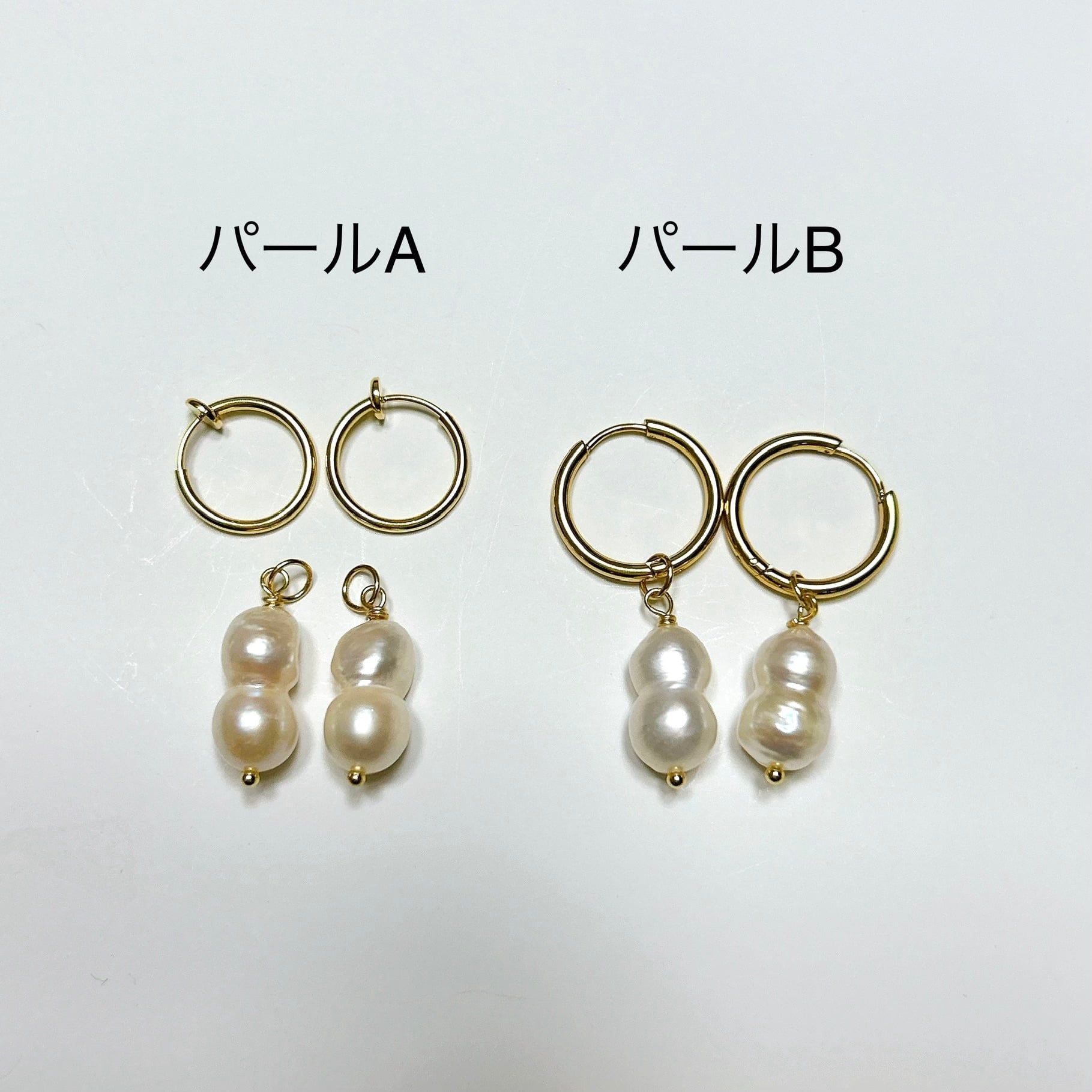 パールの形が少しずつ違いますので、A、Bからお好きなパールをお選びください。
