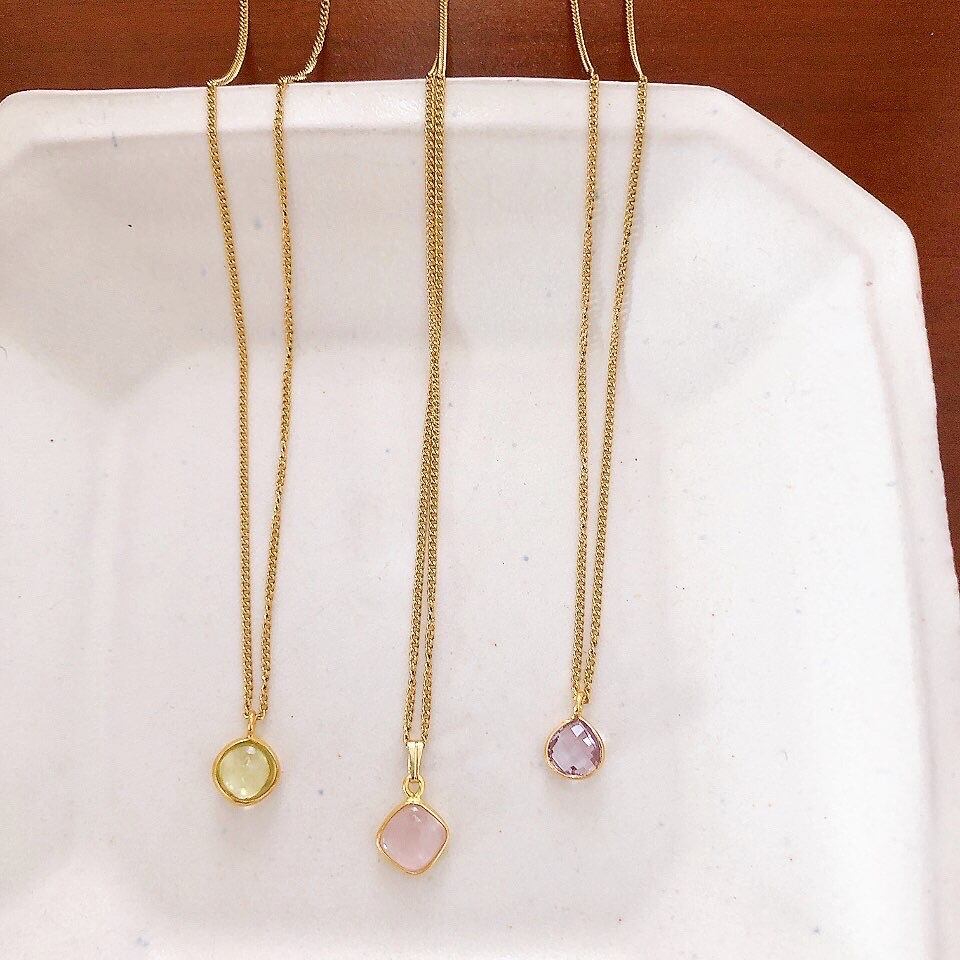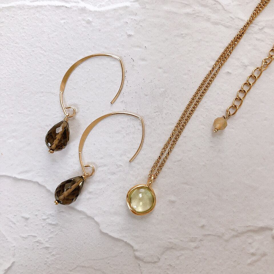 透明感あふれるぷっくりしたライトイエローのレモンクォーツが、春夏にぴったりのネックレスです。