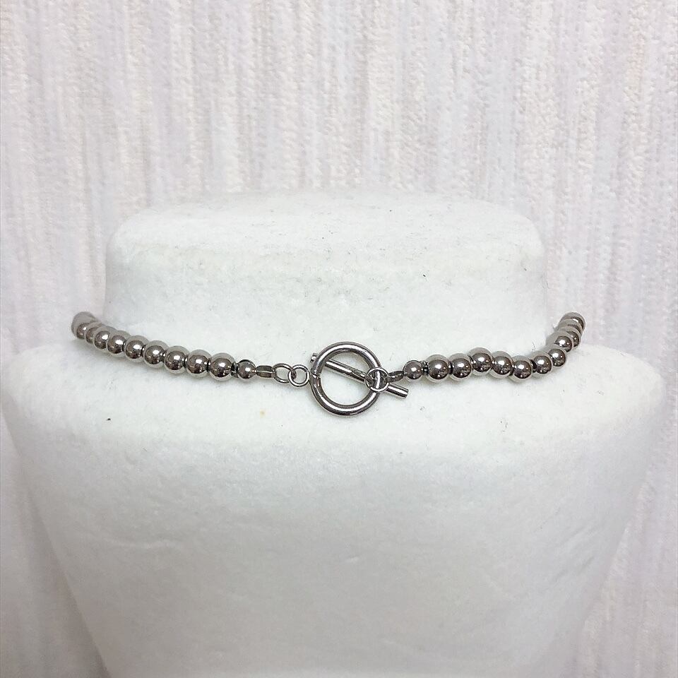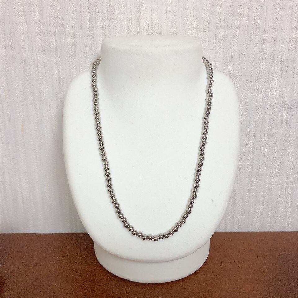 こちらはシルバーカラーの5mmボールでお作りしました。長さは程よく決まる46cmです。
