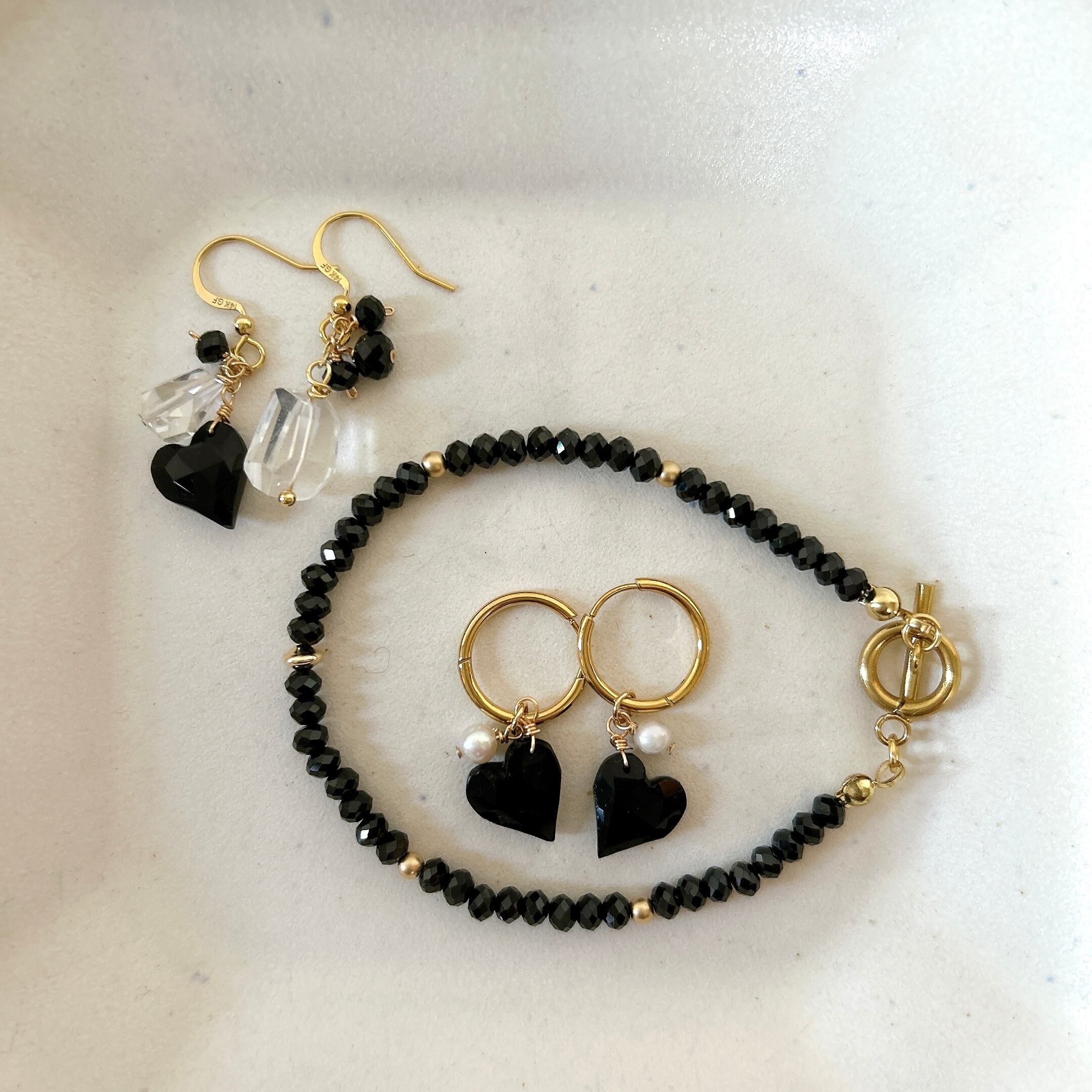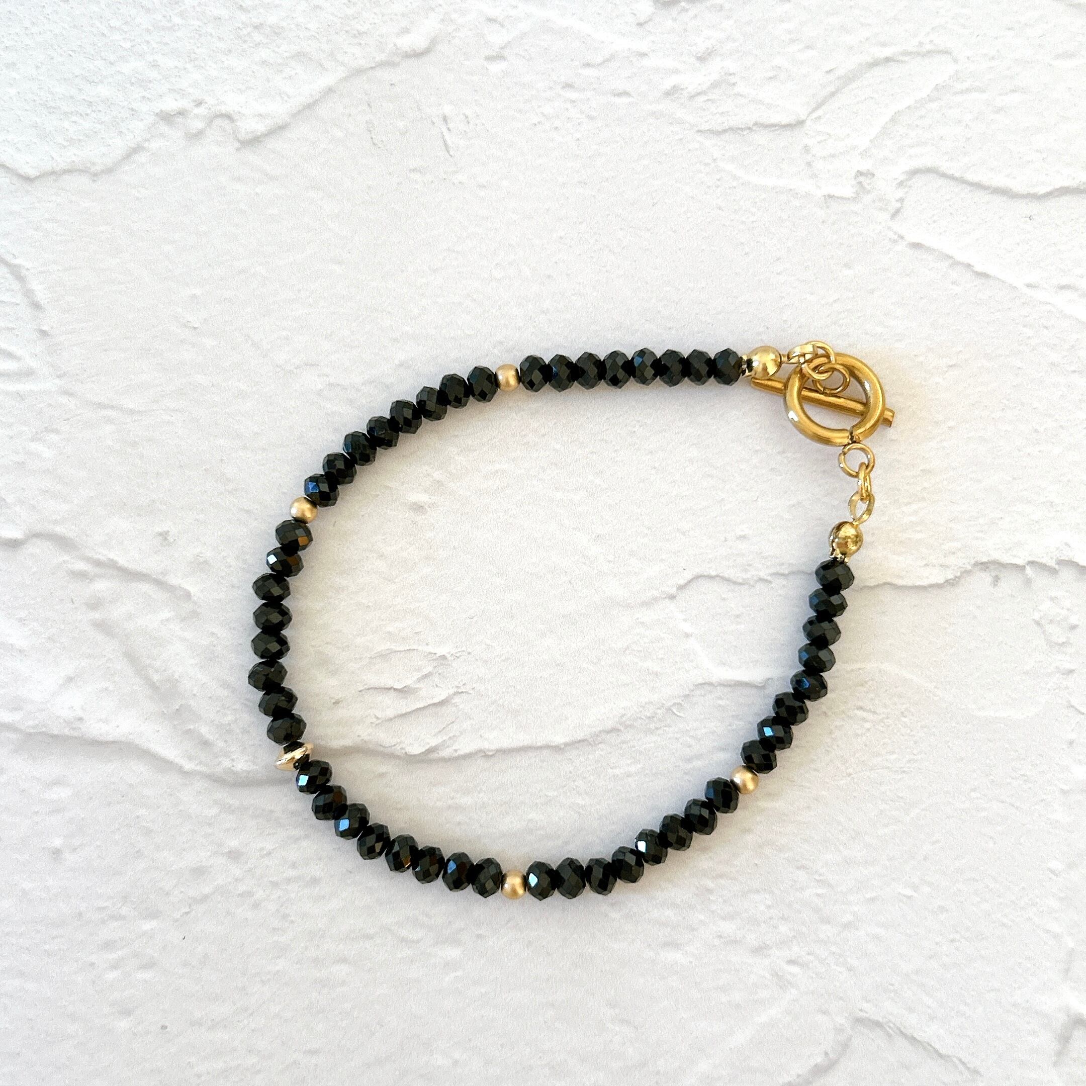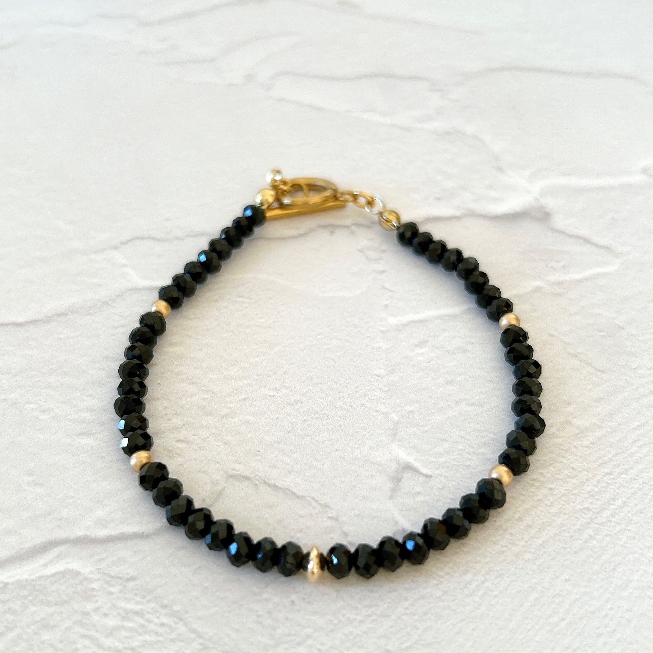 キラキラのボタンカットがとっても美しい、ブラックスピネルのブレスレット。
