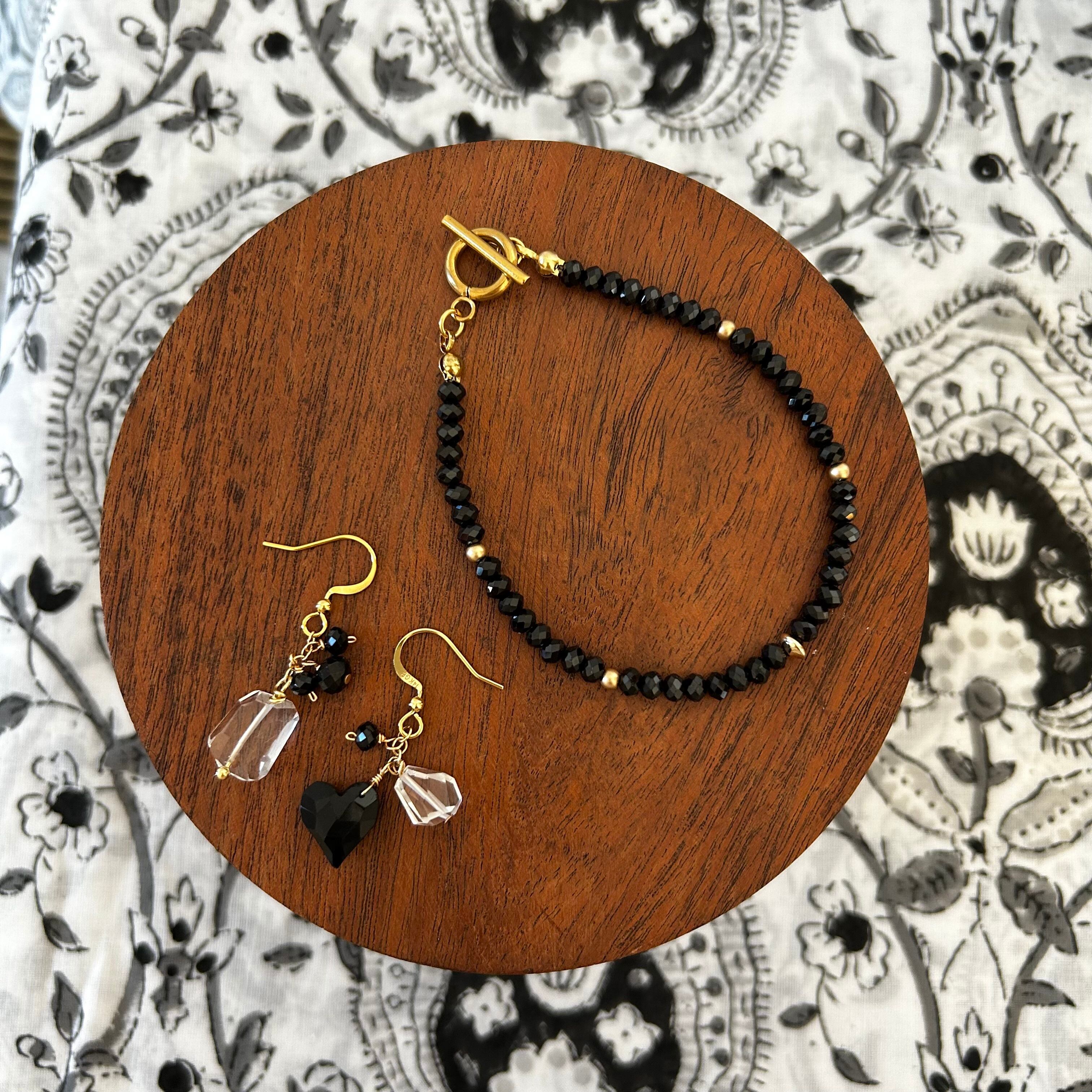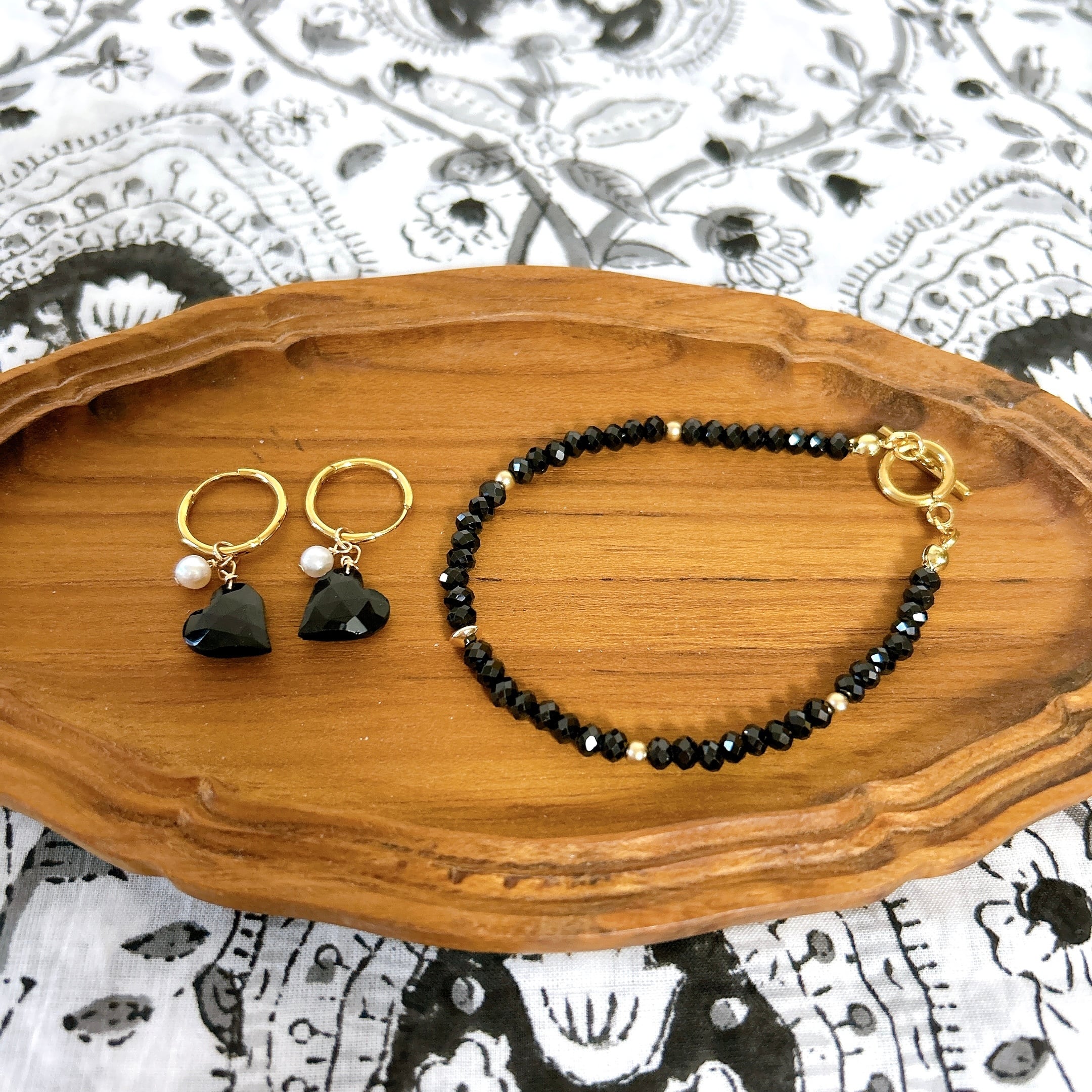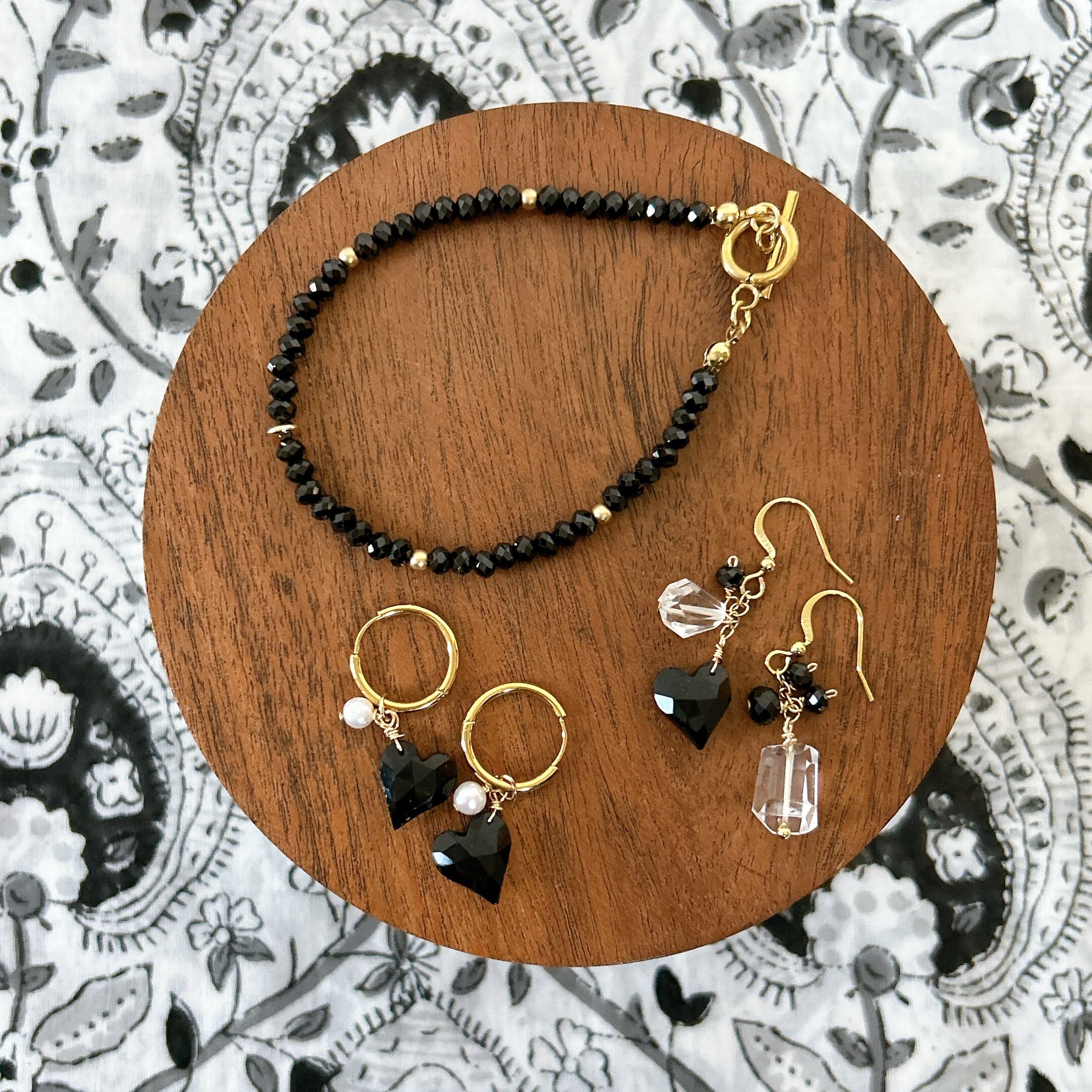 キラキラのボタンカットがとっても美しい、ブラックスピネルのブレスレット。