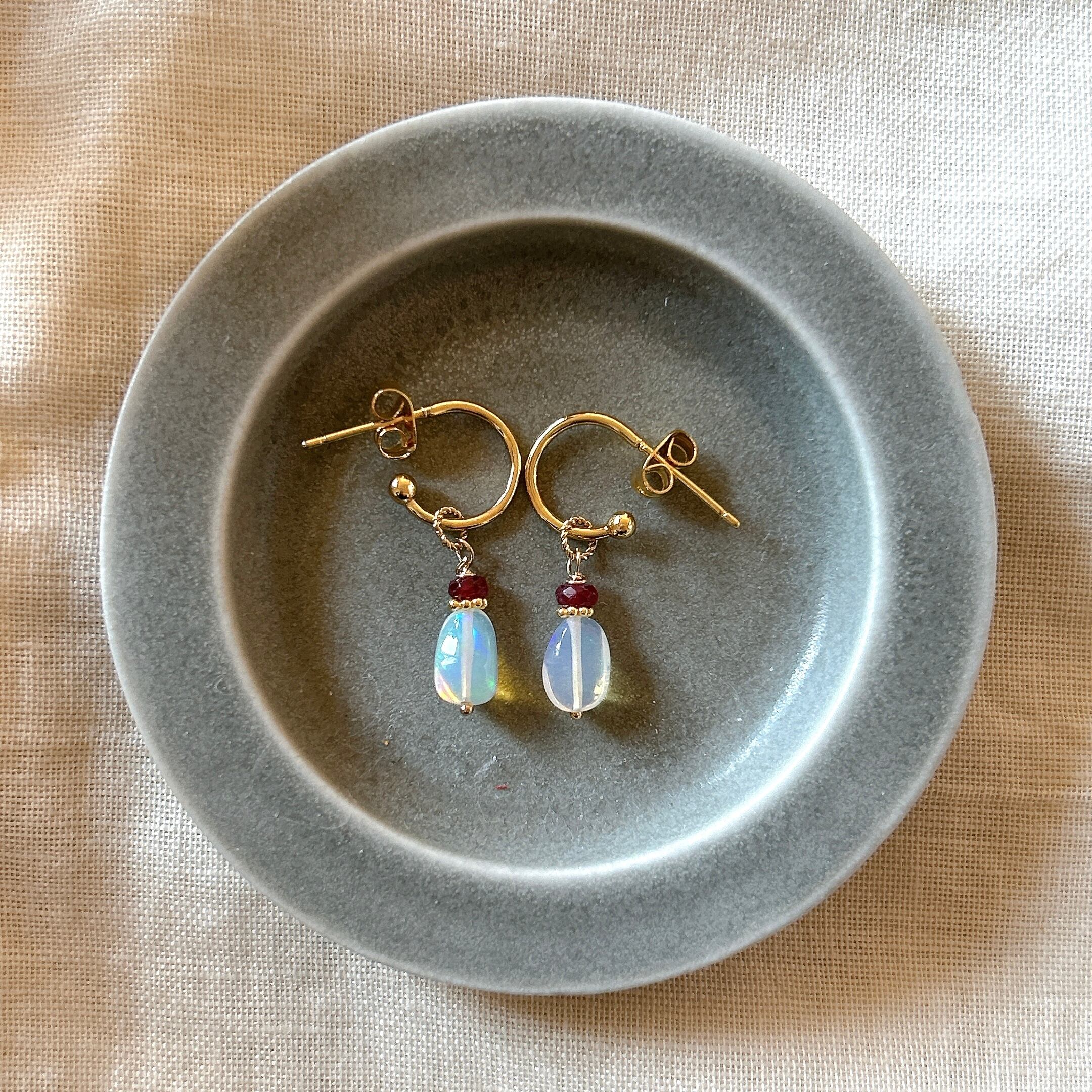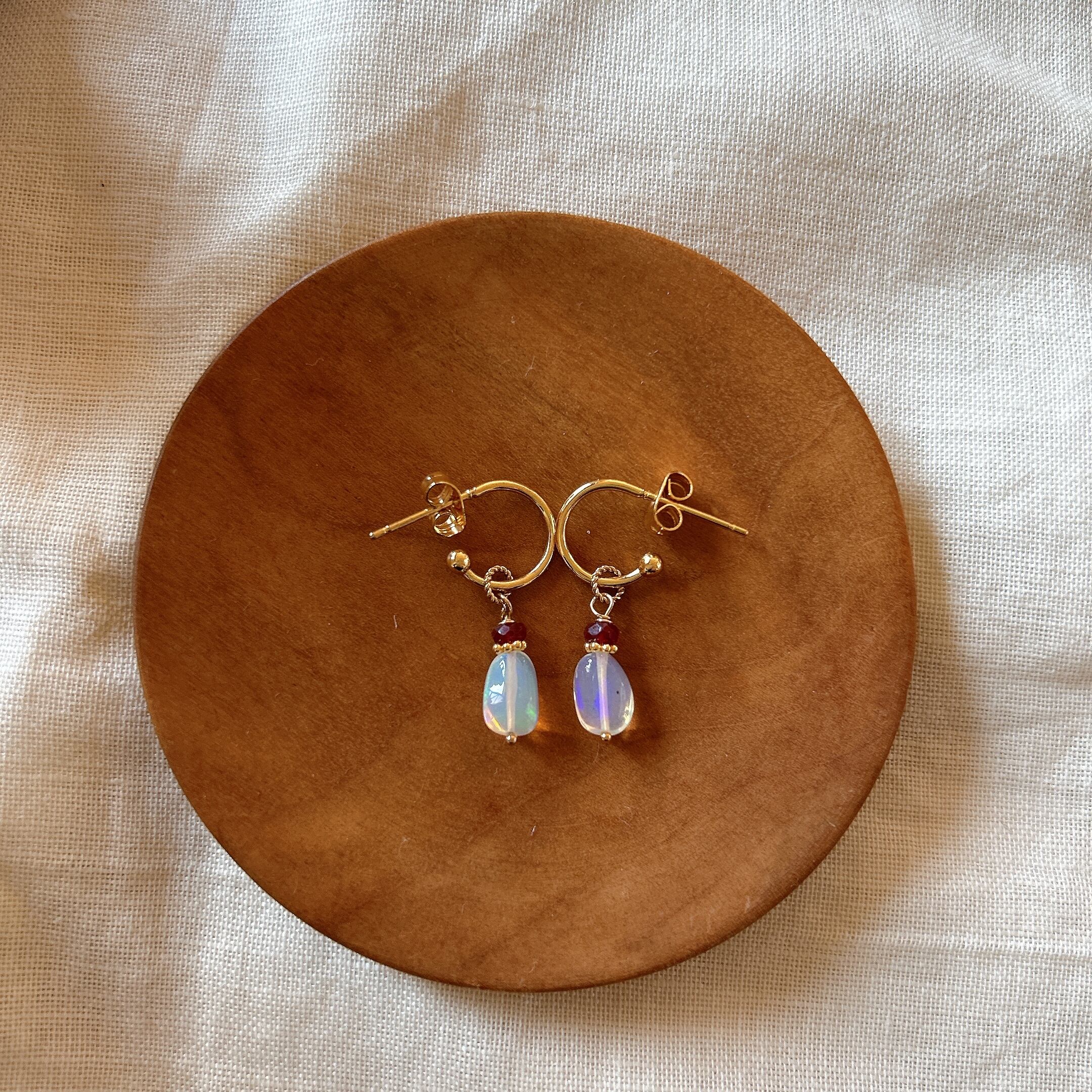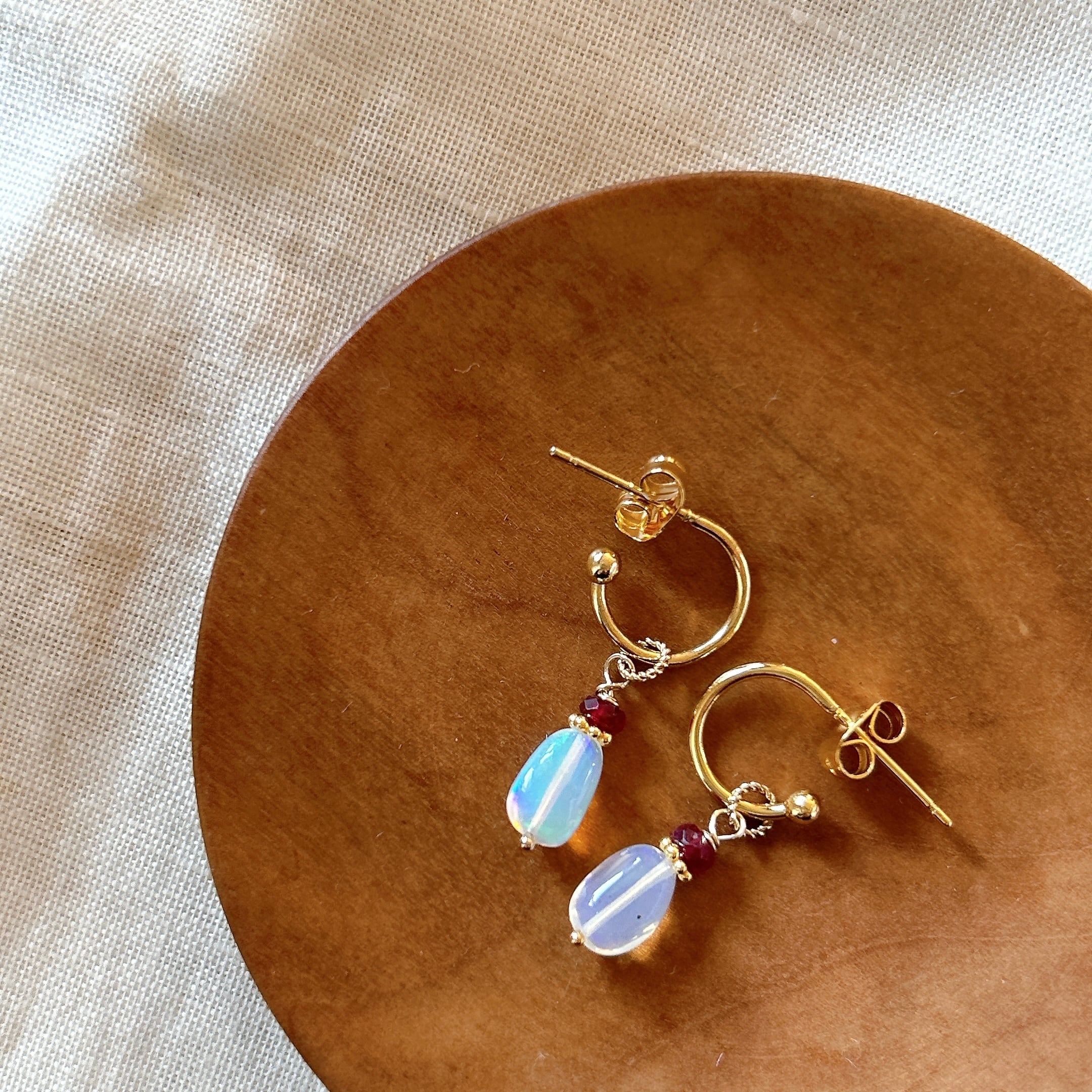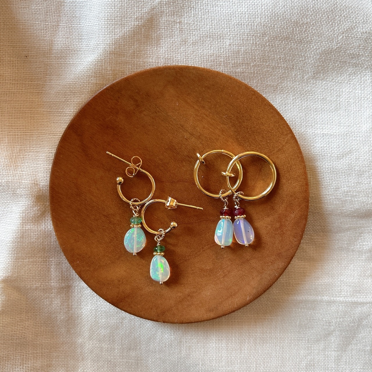 プレシャスオパールと貴石のプチピアス<ルビー> P-81