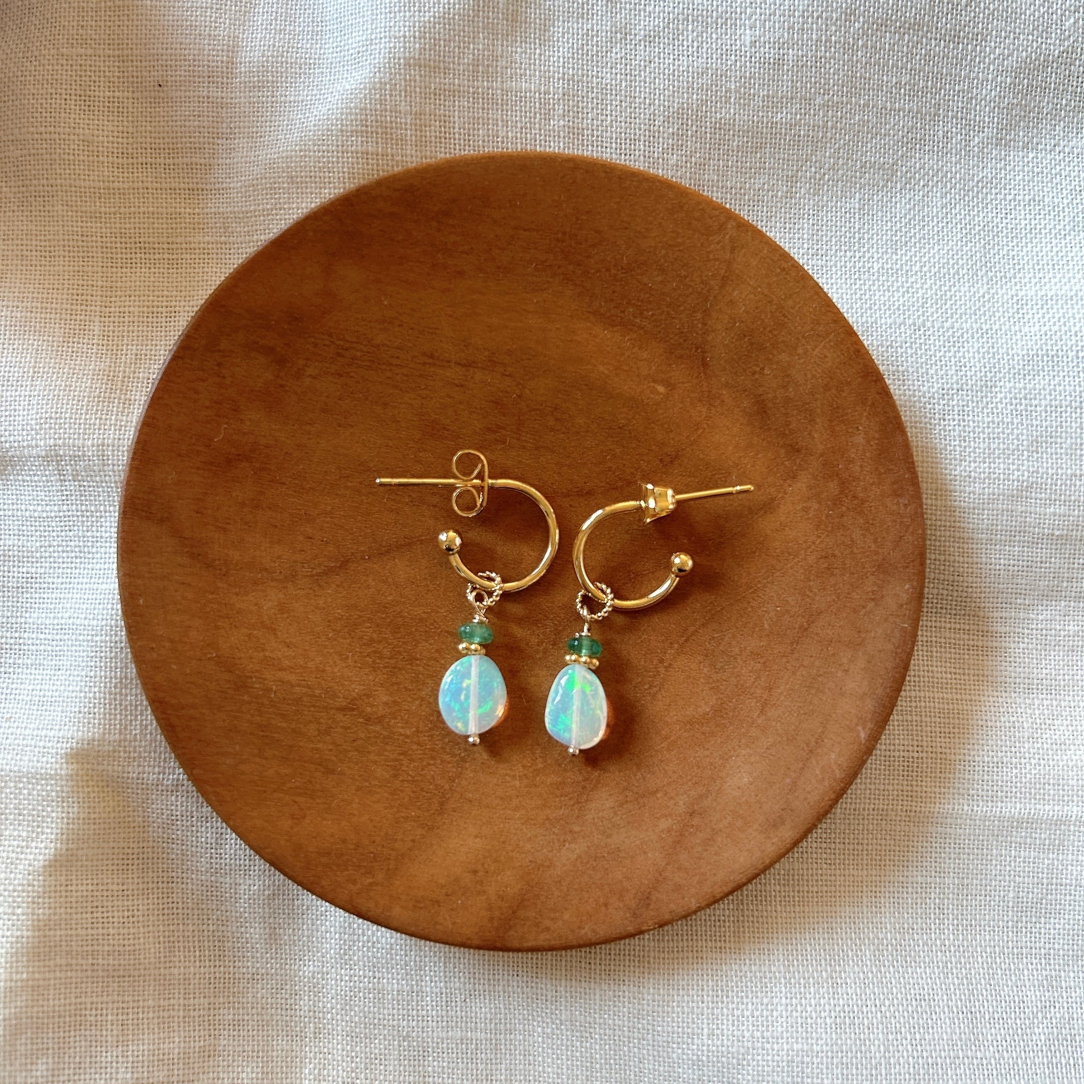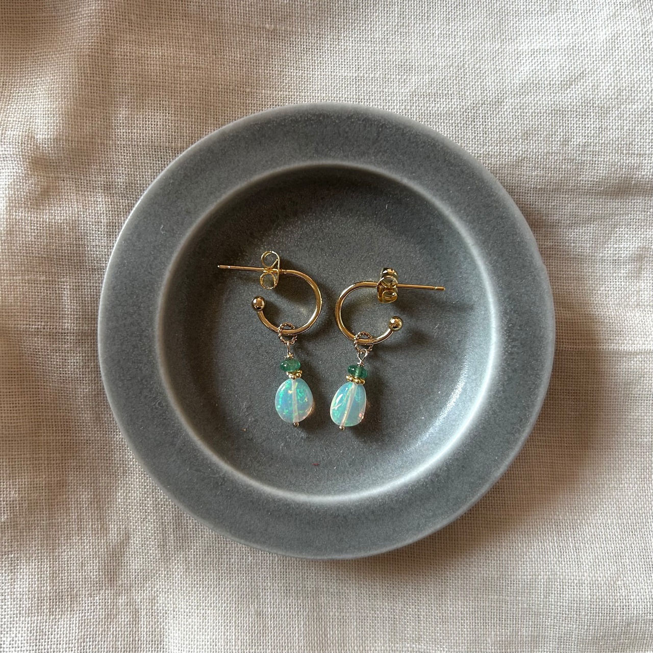 プレシャスオパールと貴石のプチピアス<エメラルド> P-80